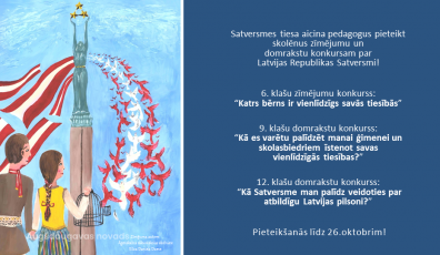 Jaunatnei15.10.2020Satversmes tiesa rīko 4. zīmējumu un domrakstu konkursu par Latvijas Republikas Satversmi Lasīt vairāk