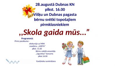 Jaunatnei25.08.2020Pirmklasnieku svētki “Skola gaida mūs” Višķu un Dubnas pagasta bērniem Lasīt vairāk