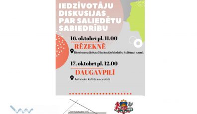 AKTUĀLI02.10.2019Latgales iedzīvotājus aicina piedalīties diskusijās par saliedētu sabiedrību Lasīt vairāk