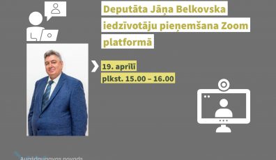 Pagastu un pilsētu ziņas10.04.2021Deputāta Jāņa Belkovska iedzīvotāju pieņemšana Zoom platformā Lasīt vairāk