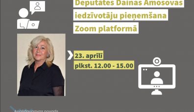 Pagastu un pilsētu ziņas21.04.2021Deputātes Dainas Amosovas iedzīvotāju pieņemšana Zoom platformā Lasīt vairāk
