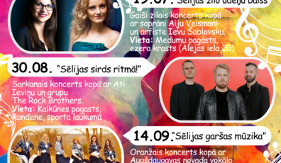 AKTUĀLI03.06.2025Sēlijā sākas daudzkrāsains muzikālais ceļojums – koncertu cikls “Sēlijas krāsainās skaņas” Lasīt vairāk