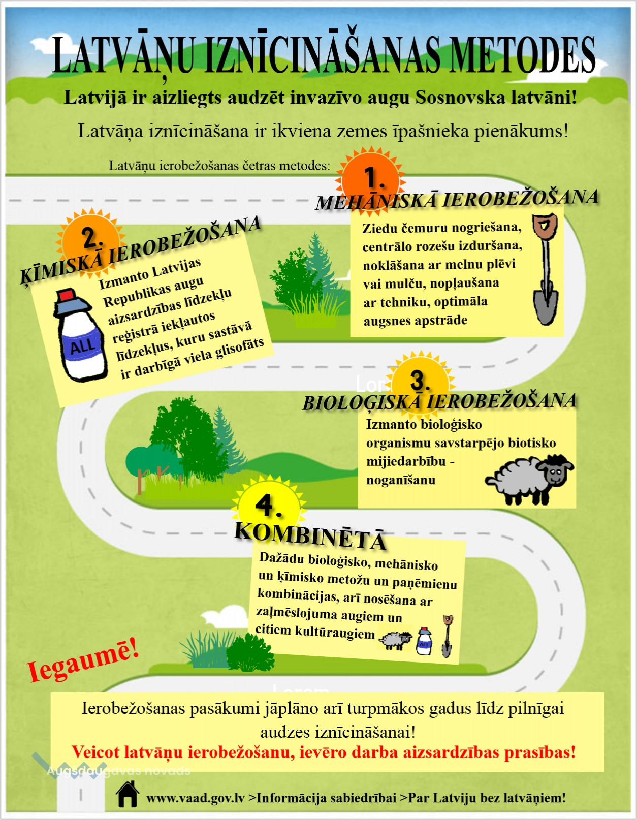 Informācija par latvāņu iznīcināšanas metodēm pieejama Valsts augu aizsardzības dienesta mājas lapā šeit.