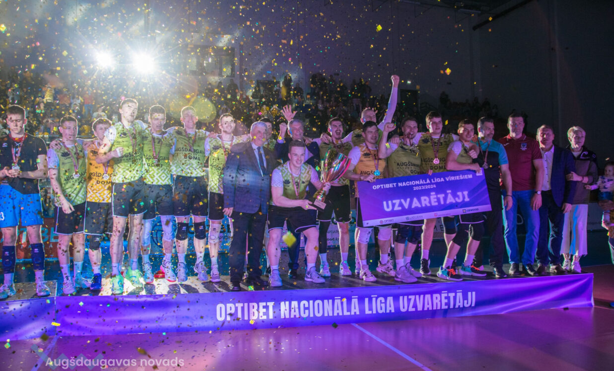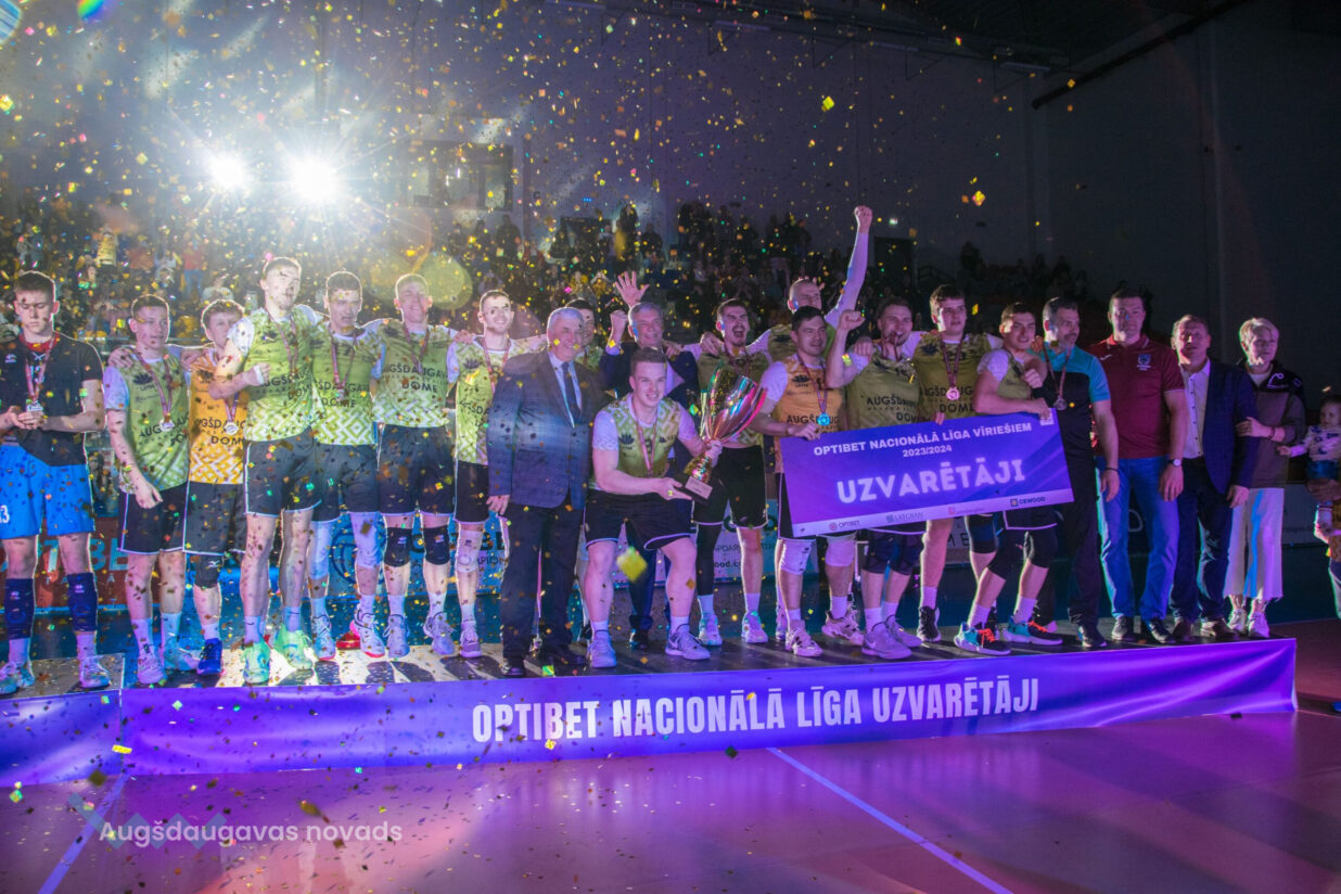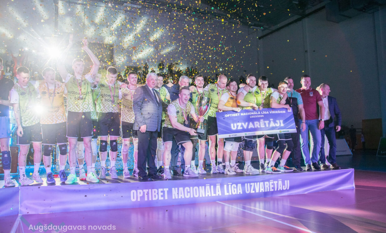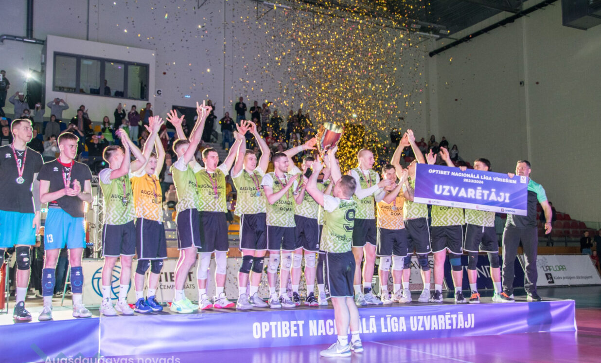 “Optibet” Latvijas čempionāta vīriešiem (Nacionālās līgas sacensību) finālā 23. martā Daugavpils Olimpiskajā centrā “Augšdaugava” četros setos pieveica “Jēkabpils juniori”/JSS volejbolistus, bet trešo vietu izcīnīja eksčempioni VK “Ventspils” volejbolisti.