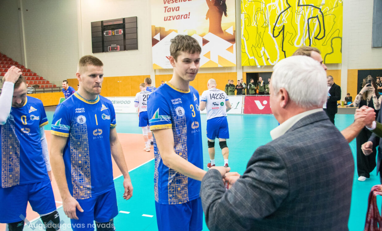 “Augšdaugava” pieveica “Jēkabpils juniori”/JSS volejbolistus ar 3-1 (20:25, 27:25, 25:17, 25:21). Uzvaras punktu uzbrukumā guva Konstantīns Marčenko.