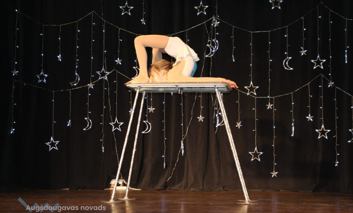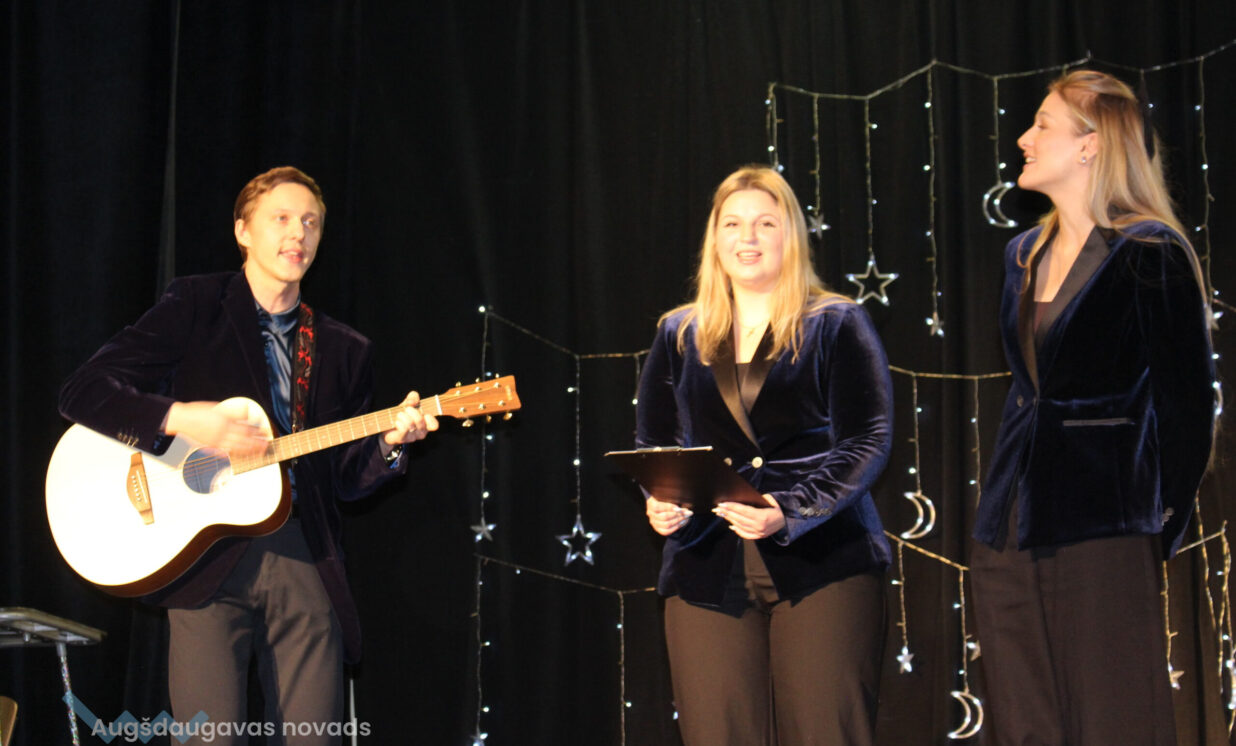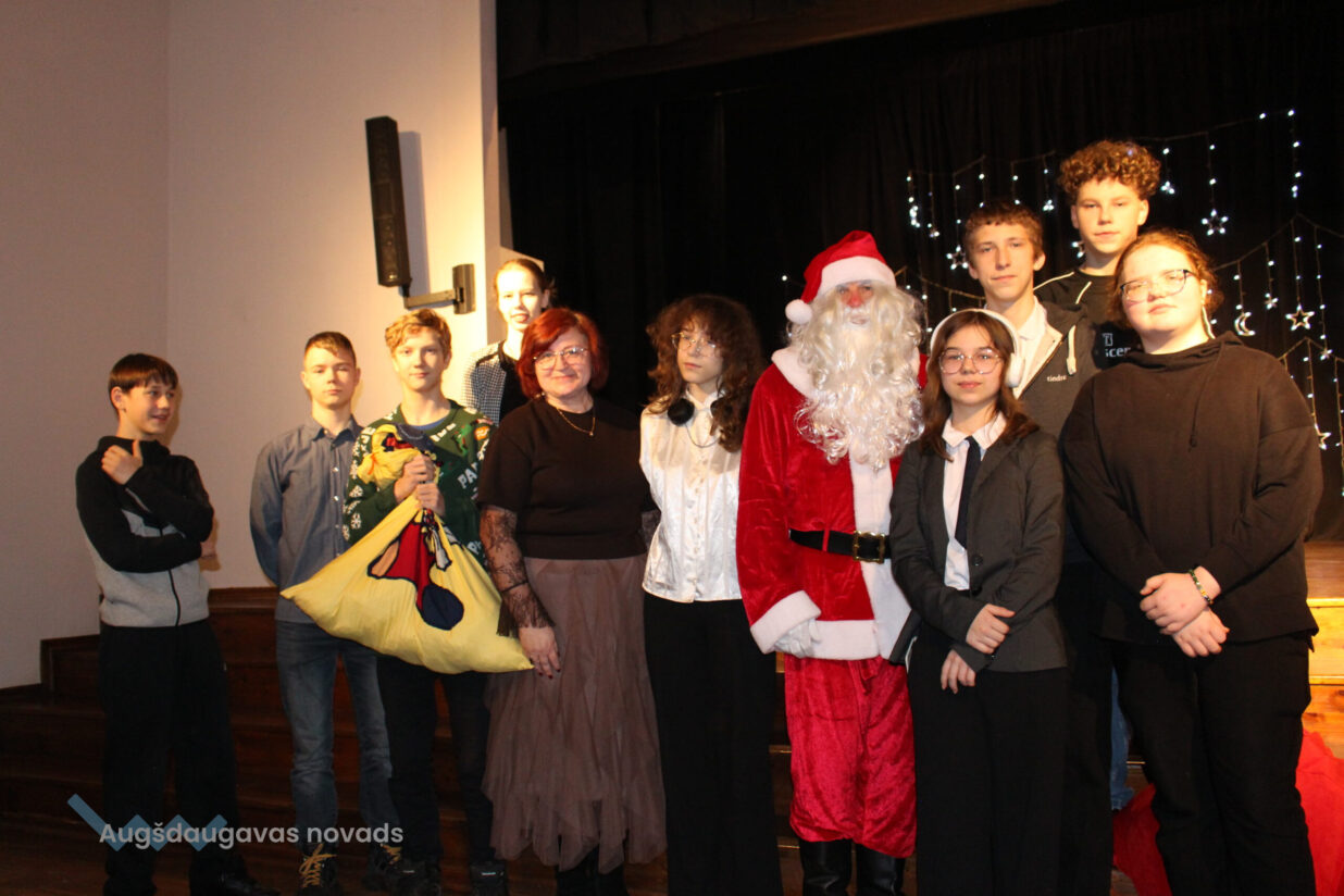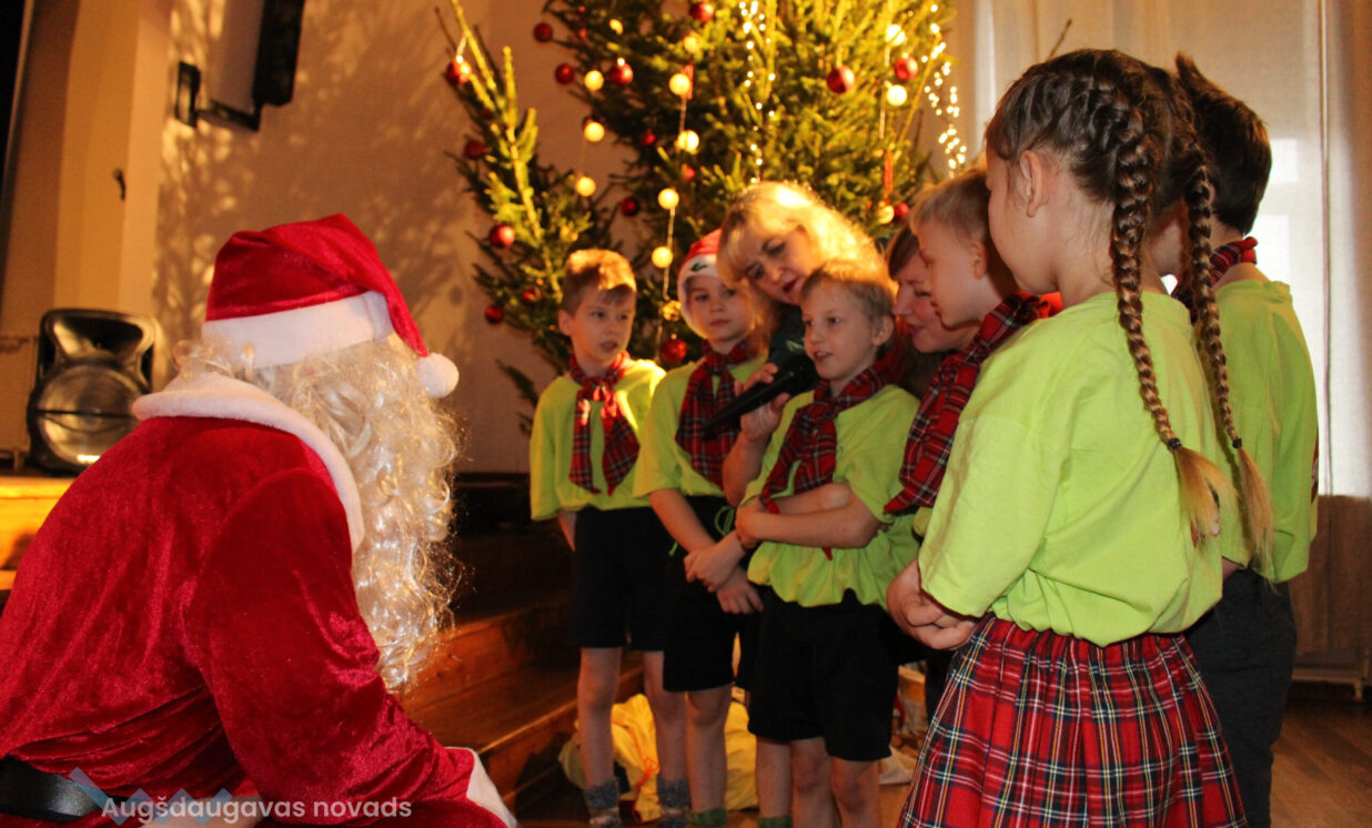 Ar patiesu sirsnību klātesošie sagaidīja mazos pirmskolniekus ar dziesmu “Pirmā sniegpārsliņa”. Drosmīgi visai zālei akordeonu spēlēja 2.klases skolnieks Adriāns un neparasto instrumentu čellu – Megija. Brašie brāļi Jorens un Atvars no kuplās Kārkliņu ģimenes lasīja mammas Dinas pašas sacerēto Ziemassvētku dzejoli. Burvīgas bija mūsu mīļās skolotājas – Linda, Nellija un Ināra Podniece, kas pasākumā ienesa tik dvēselisku noskaņu ar skaistajām laternām un izpildot dziesmu “Veltījums”. Burvīgi bija mazie deju kolektīva eži, kas izpildīja jauku ežu deju. “Sidrabiņa lietiņš lija” skolas folkloras kopas izpildījumā. Burvīgus salto un neizmērījamu lokanību mums rādīja 1.klases skolniece Marija Paukšta. Diemžēl Marijas mamma un mūsu mūzikas skolotāja Katrīna Paukšta, bet visais Latvijai šī gada X-Faktora zvaigzne, bija tā aizsmakusi, ka nevarēja parādīt savu priekšnesumu. Taču klātesošie viņu tāpat sumināja par uzdrīkstēšanos piedalīties televīzijas šovā. Taču vēl vieni televīzijas šova dalībnieki gan kuplināja mūsu pasākumu un bija tā kulminācija – Daugavpils Tumšzilais koris! Tajā piedalījās otra mūsu mūzikas skolotāja Annija.