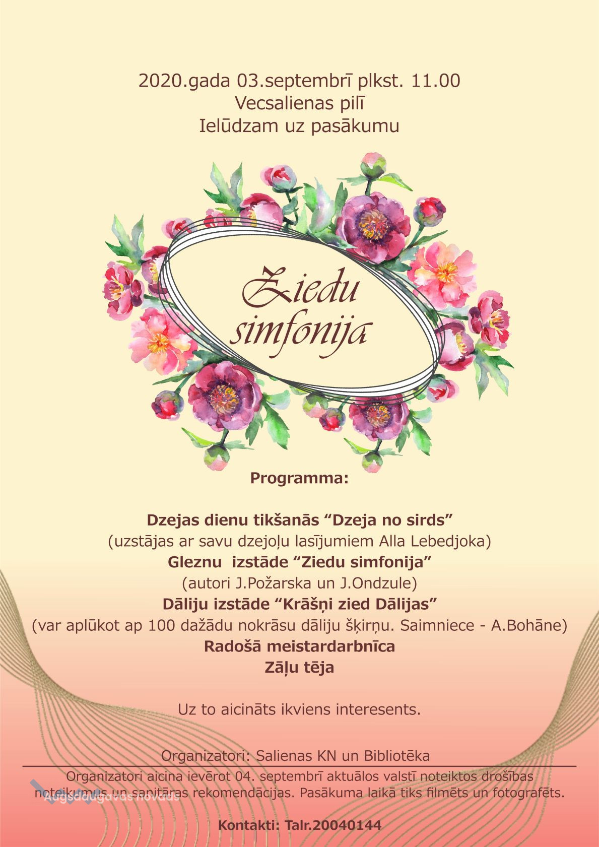 2020. gada 3. septembrī plkst 11.00, Vecsalienas pilī norisināsies pasākums "Ziedu simfonija". Programmā: