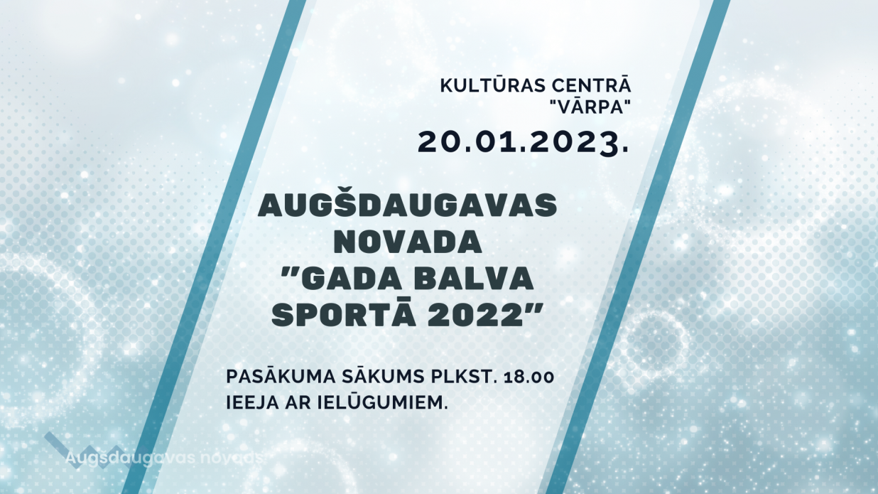 20. janvārī plkst. 18.00 Augšdaugavas novada kultūras centrā "Vārpa" norisināsies pasākums “Gada balva sportā 2022”. Tajā tiks pasniegtas balvas nominācijās "Novada labākā pilsētas vai pagasta pārvalde sportā", "Novada Gada sportists", "Novada Gada sportiste", "Novada Gada treneris/re individuālajos sporta veidos", "Novada Gada treneris komandu sporta veidos", "Novada Gada Sporta spēļu vīriešu komanda", "Novada Gada Sporta spēļu sieviešu komanda", "Novada Gada uzlecošā zvaigzne jaunieši", "Novada Gada uzlecošā zvaigzne jaunietes", "Novada Gada sportists neolimpiskajos sporta veidos", "Novada Gada sportiste neolimpiskajos sporta veidos", "Novada Gada sportists seniors/seniore", "Novada Gada sporta pasākums", "Novada Gada senioru sporta spēļu komanda", "Pateicības Augšdaugavas novada čempionātu galvenajiem tiesnešiem".