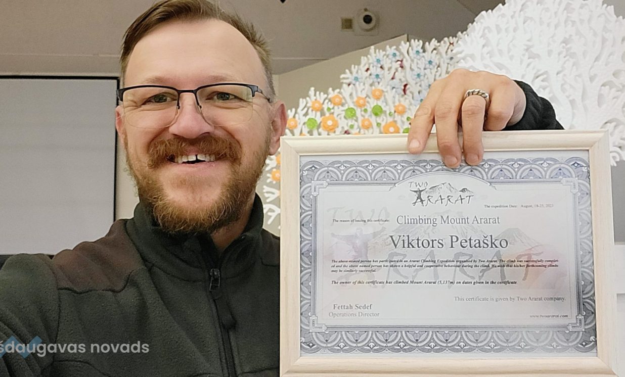 8. oktobrī Sventes Tautas namā notika iepriekš vēl nebijis pasākums. Ienākot zālē, pasākuma apmeklētāju skatienam pavērās dažādu mantu izstāde, termoss ar karstu tēju un fonā – Ararata sniegotās virsotnes bilde. Enerģiski sasveicinoties, visus sagaidīja Viktors Petaško. Tā sākās pieredzes stāsts par pastaigu virs mākoņiem 5165 metru augstumā.