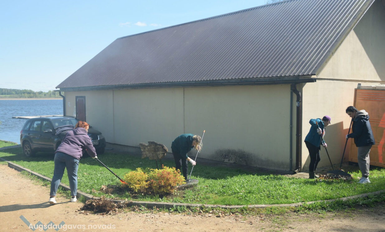 Višķos pie Luknas ezera talkoja arī pašvaldības aģentūras "Višķi"darbinieki.