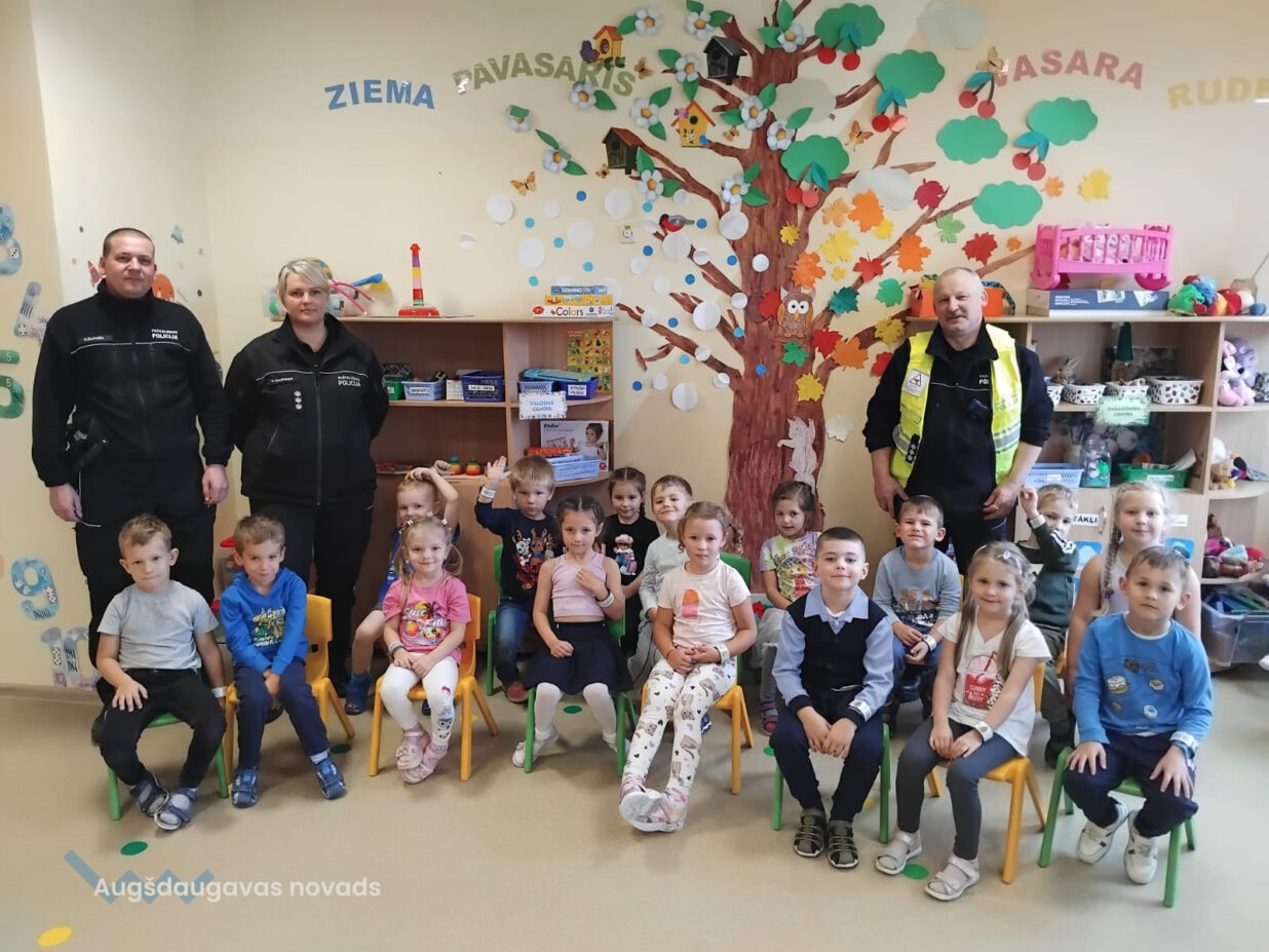 Tikšanās laikā policisti bērniem pastāstīja par pašvaldības policijas ikdienas pienākumiem, to, kādos gadījumos pie policijas vērsties pēc palīdzības, kā arī uzsvēra personīgās drošības nozīmi ikdienas situācijās – uz ielas, sabiedriskās vietās un mājās.