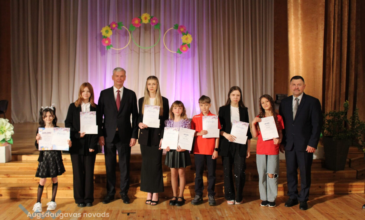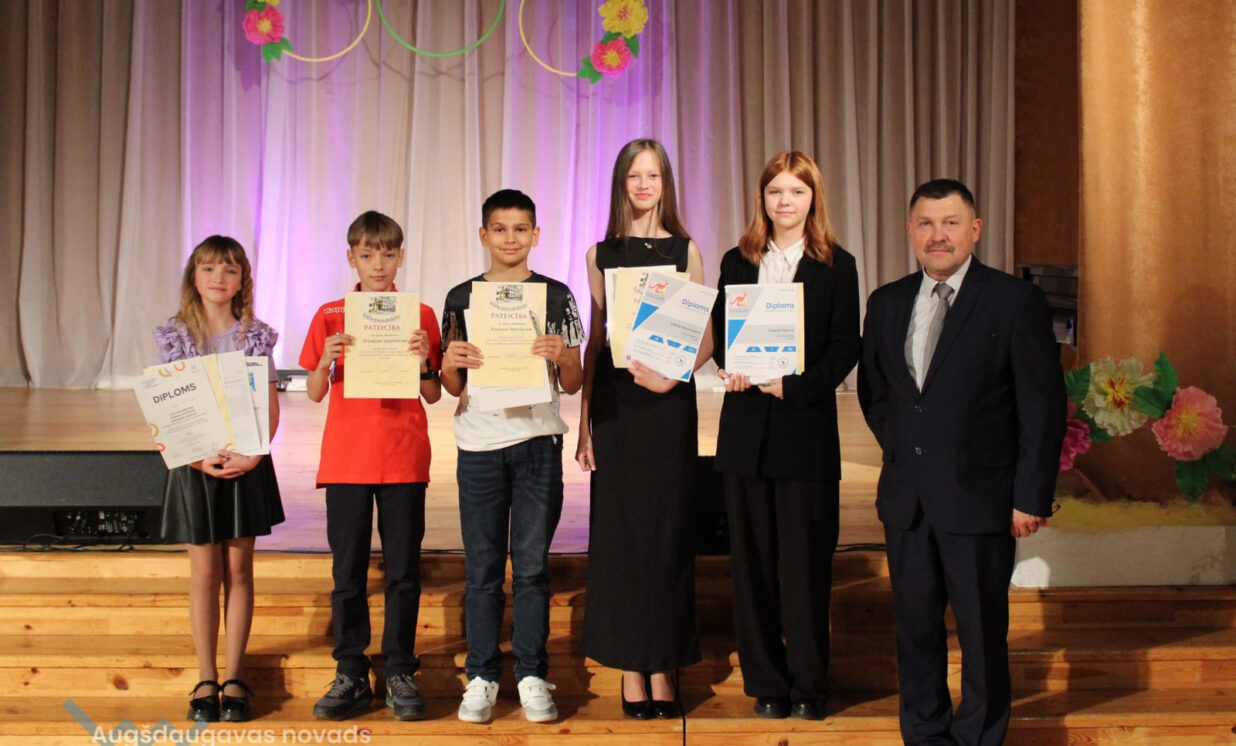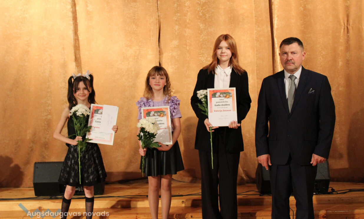 Pateicības saņēma arī skolēni ar izciliem un labiem mācību sasniegumiem. 5 sudraba liecības saņēma: Jelizaveta Ivanova (4. klase), Renas Dmitrijevs, Artjemijs Agafonovs (5.a klase), Valērija Razumejeva (7. klase) un Valērija Zaiceva (8. klase). Kopumā pateicību par teicamām un labām sekmēm saņēma 30 skolēni, par aktīvu dalību interešu izglītībā tika apbalvoti 36 skolēni.