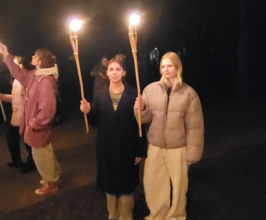 Vakarā skolēni un skolotāji devās uz Medumiem, kur piedalījās Lāčplēša dienai veltītajā Lāpu gājienā, tā ir unikāla iespēja kā kopā var godināt Latvijas brīvības cīnītājus.