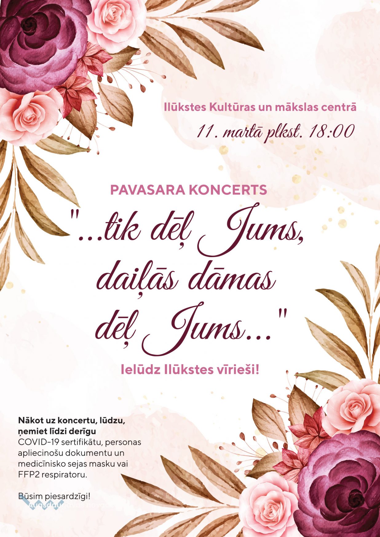 11. martā plkst. 18.00 Ilūkstes Kultūras un mākslas centrā notiks pavasara koncerts "...tik dēļ Jums, daiļās dāmas dēļ Jums...".