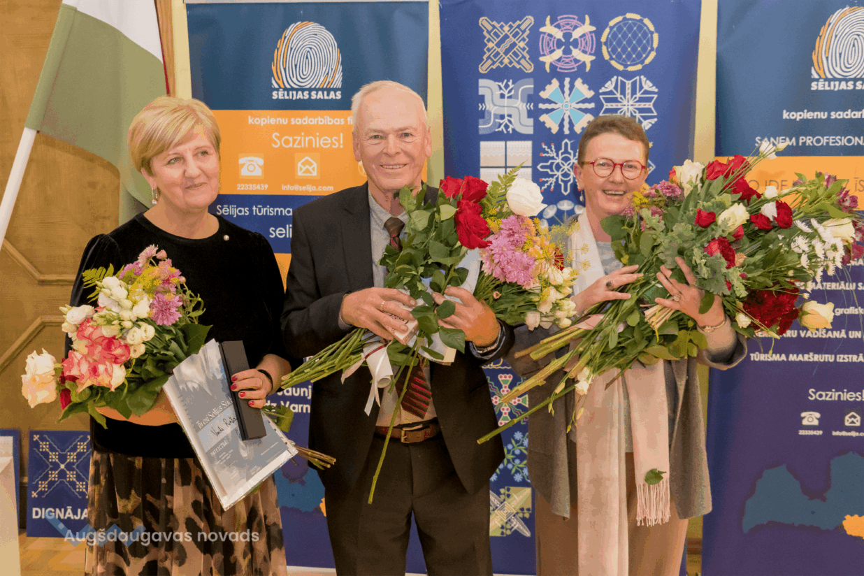 Viesītes kultūras centrā “Sēlija” 11. oktobra pēcpusdienā svinīgā apbalvojuma “Sēlijas sudrabs” pasniegšanas ceremonijā godināti trīs līdzvērtīgi spoži galvenās balvas saņēmēji. Sudraba rotadatas ar vilka siluetu šogad mirdz Bebrenē, Ilūkstē un Slatē.