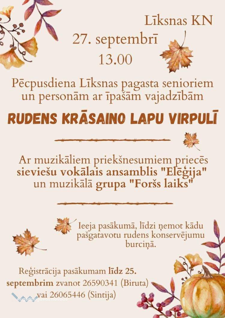 Pēcpusdiena Līksnas pagasta senioriem un personām ar īpašām vajadzībām “Rudens krāsaino lapu virpulī”07.09.2023AKTUĀLI