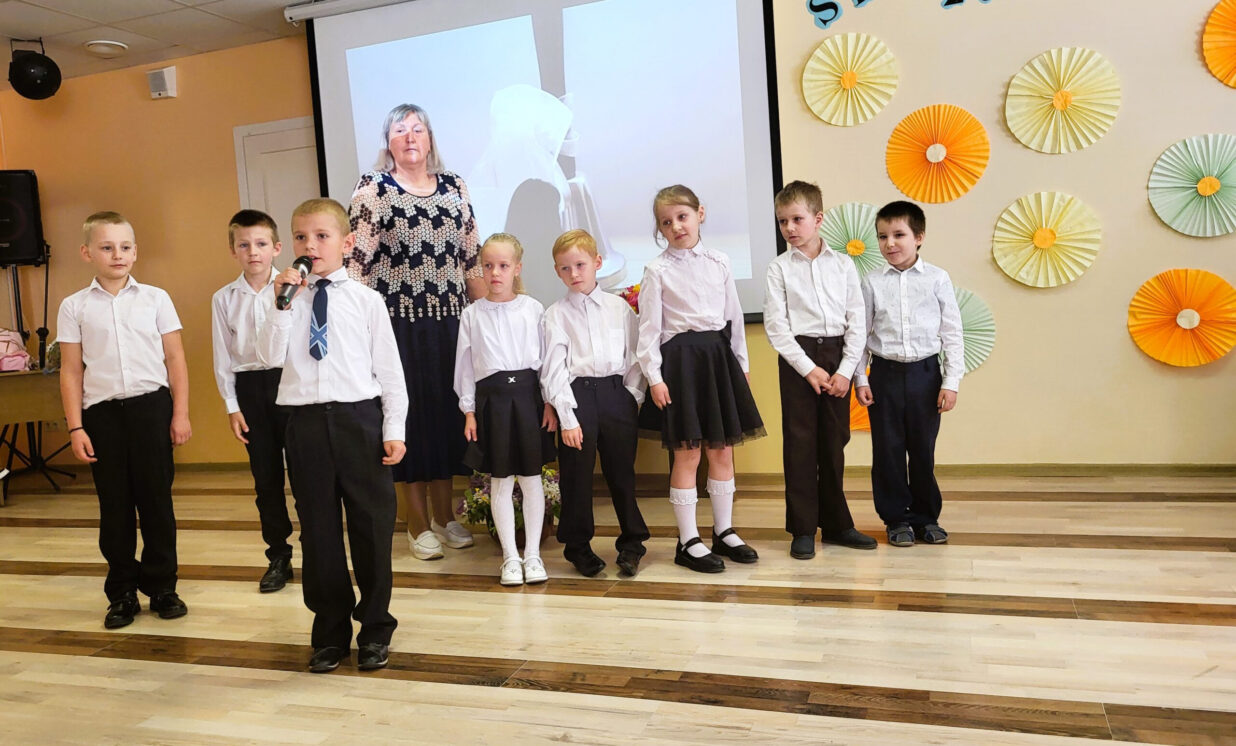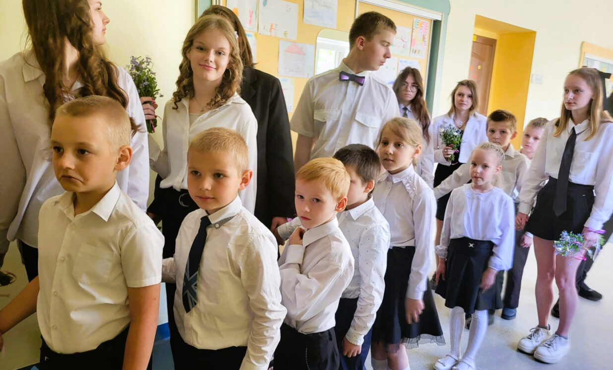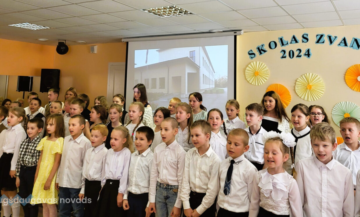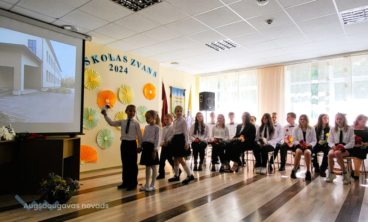 Atmiņu un pārdomu brīdis skolas lapenē un nu jau 9. klases skolēnus skolas zālē ievada 1. klases skolēni, klases audzinātāja Zinaīda PAULIŅA un 1. klases audzinātāja Ingrīda BLEIDELE.