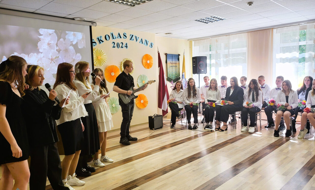 Devītie savos svētkos atskatījās uz skolā pavadīto laiku, un, dāvinot visiem ziedus, sirsnīgus vārdus, teica PALDIES skolotājiem par zināšanām, tehniskajiem darbiniekiem – par viņu darbu, vecākiem – par rūpēm un mīlestību.