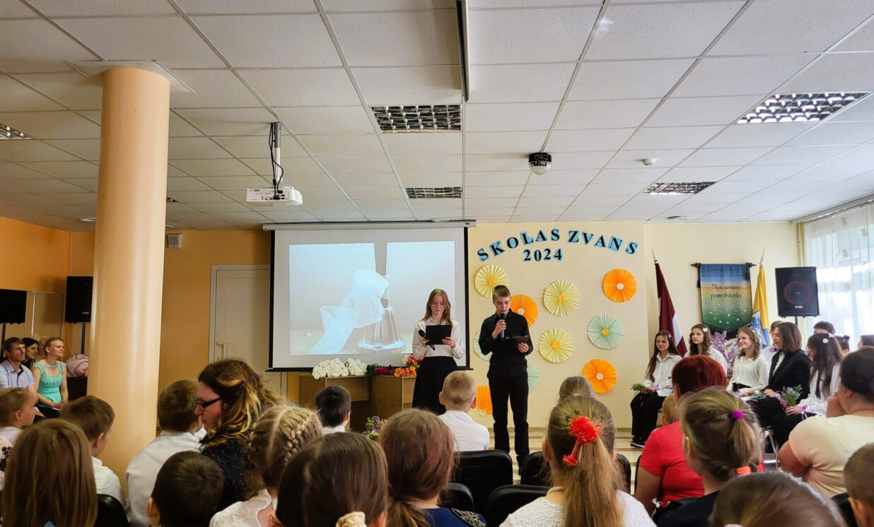 Pēdējā zvana svētkos 9. klases skolēnus uzrunāja un veiksmi eksāmenos vēlēja skolas direktors Pāvels BROVKINS, klases audzinātājas Zinaīda PAULIŅA un vecāki. Klases audzinātāja saviem skolēniem uzdāvināja laimes atslēdziņu, atgādinot, ka pašiem būs jāmeklē tās durvis, kurām derēs šī atslēdziņa.