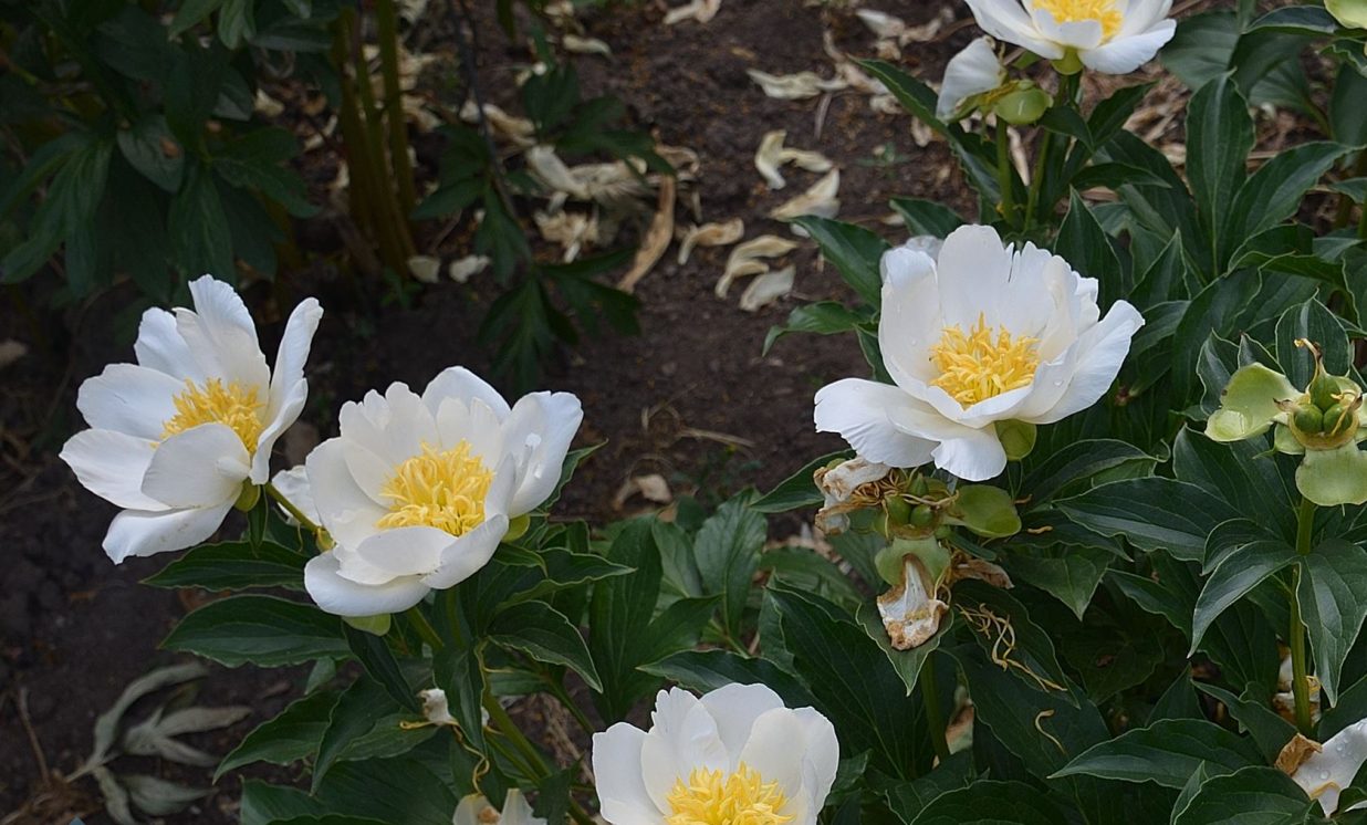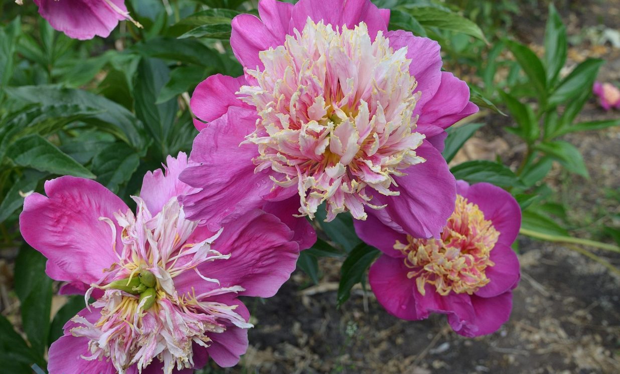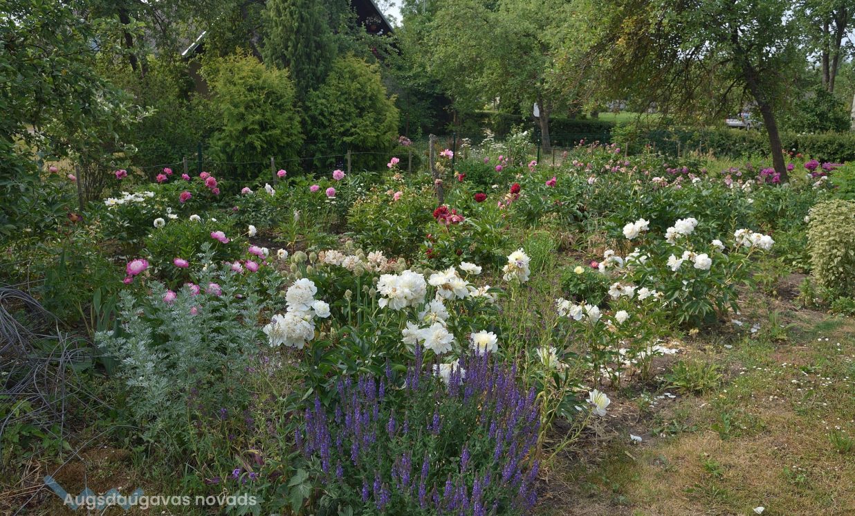Šī pavasara salnas un vasaras karstais laiks gan nav nācis ziediem labumā, tomēr par spīti dabas kataklizmām peonijas ir saplaukušas, lai arī ziedēšanas laiks krietni sarucis tveices dēļ. Vandas Karpenko nelielajā piemājas dārzā vieta ir gan dažādiem dārzeņiem, gan milzīgam daudzumam ziedu – te aug ne vien peonijas, bet vairāk kā 100 šķirņu narcises un tulpes, daudzveidīgi īrisi un lilijas, gladiolas un dālijas.