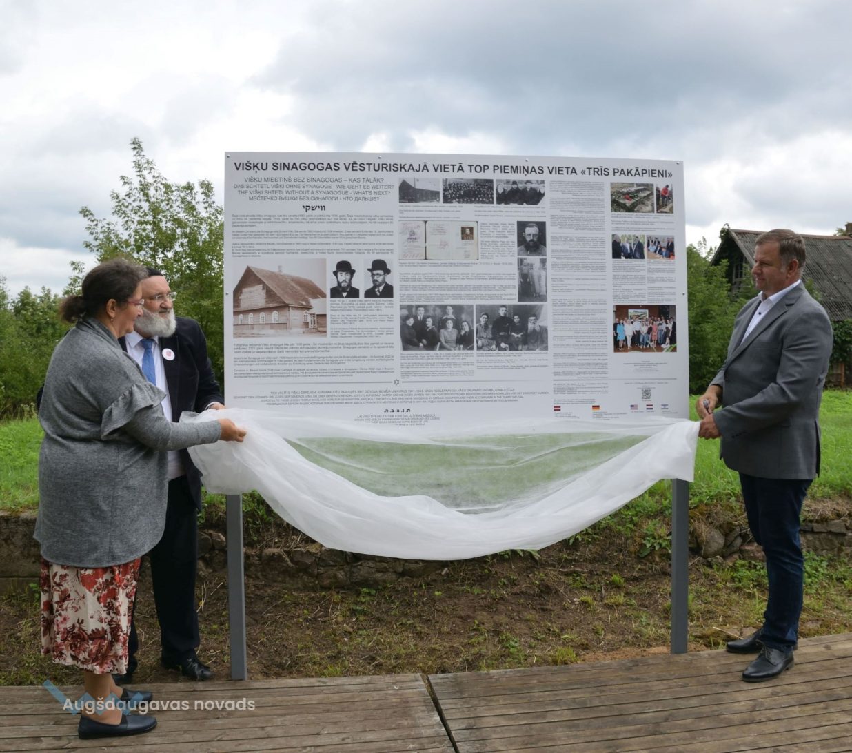 Jau nākamajā delegācijas vizītes dienā (19. augustā) pie Višķu sinagogas pamatiem notika informatīvās plāksnes atklāšanas pasākums. Tā ir veltīta Višķu ebreju sinagogai un kopienai, kas pirmskara Latvijas periodā veidoja lielāko daļu no ciemata iedzīvotājiem.