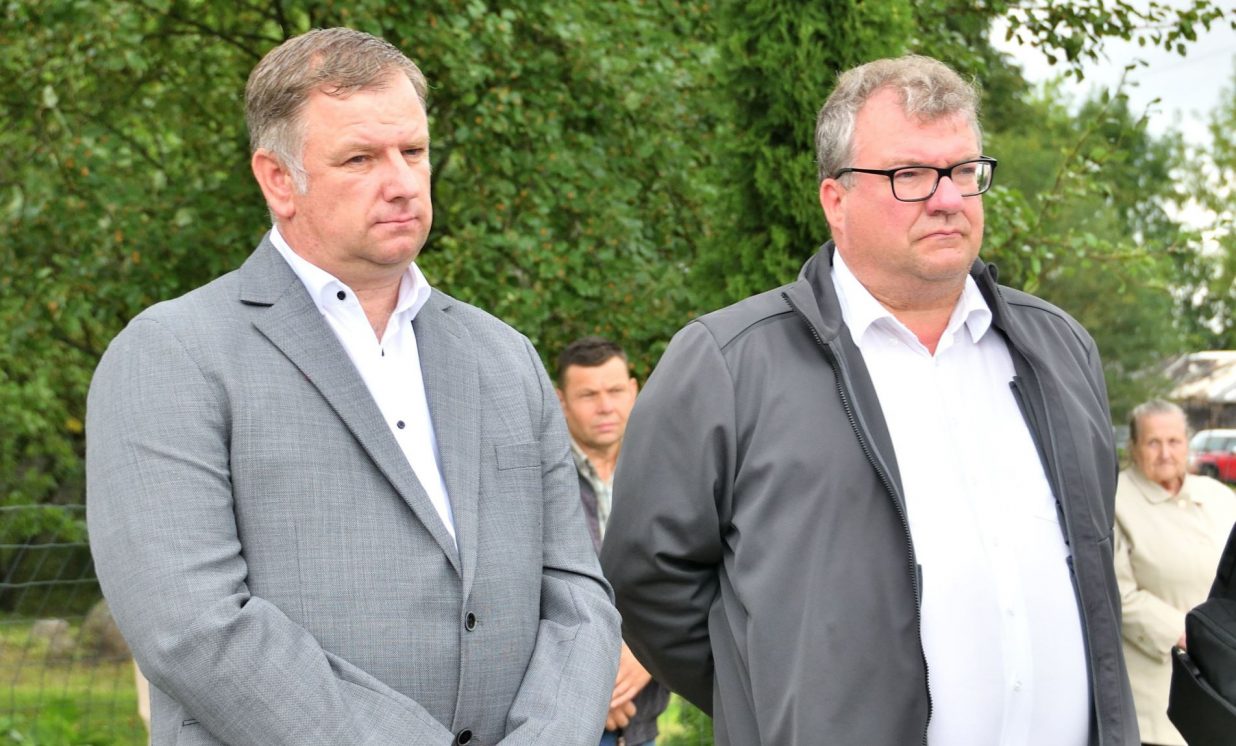 Višķu pagasta pārvaldes vadītājs Jānis Proms kopā ar Baruhu Čauskinu pēc izveidojušās tradīcijas nolika piemiņas sveci pie bijušās sinagogas pamatiem.