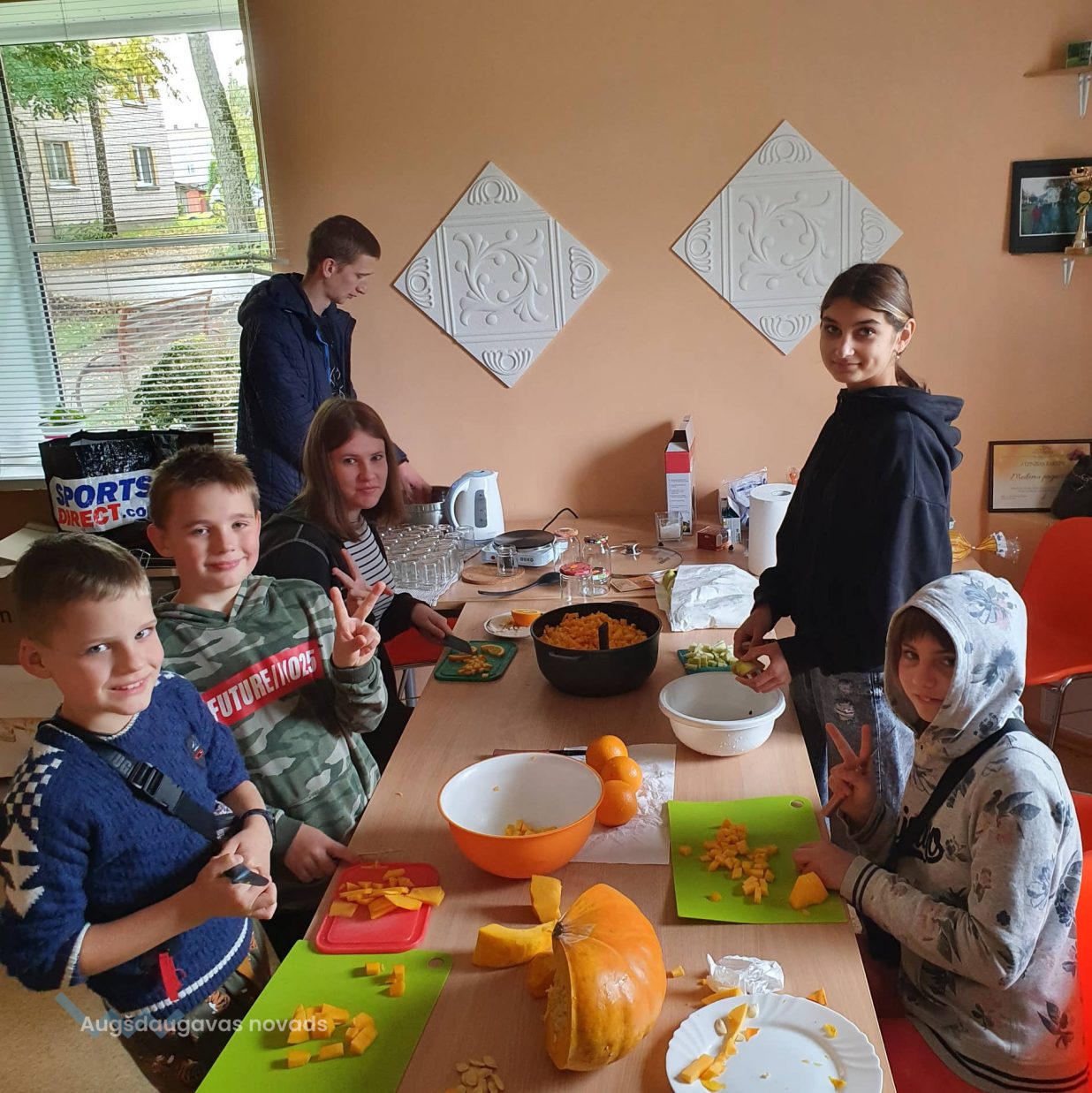 Vai, cik forši mēs pavadījām kopā laiku gatavojot mūsu oranžo ievārījumu. Neskatoties uz lietainu laiku, 2. oktobrī Medumu Jauniešu centrā mums bija silti. Bērni un jaunieši stāstīja par iemīļotāko ievārījumu un aktīvi piedalījās mūsu kulināra meistarklasē, griežot dārzeņus un augļus. Iznākumā - 5 litri, divu veidu ievārījumi, bija gatavi - apelsīns ar ķirbi, āboli ar apelsīnu un kanēli. Kopīgi mielojāmies ar mīkstu baltmaizi un karstu tēju. Patīkami, ka ievārījumu mēs gatavojām ne tikai sev, bet arī mūsu ciema senioriem, jo 9. oktobrī cienāsim ar šo aromātisko “Oranžo burkā”. Paldies visiem par aktīvu piedalīšanos!