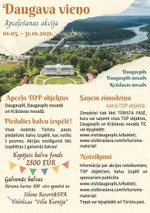 Pavasaris jau uzņēmis apgriezienus un iepriecina ar sildošiem saules stariem, gaiss smaržo savādāk, un viss ir gatavs plaukt un zelt. Pavisam drīz iestāsies mīļākais gadalaiks – vasara. Daudzi jau ir ļoti noilgojušies pēc aizraujošiem ceļojumiem, jauniem iespaidiem un piedzīvojumiem, tāpēc Daugavpils pilsētas pašvaldības tūrisma attīstības un informācijas aģentūra, Krāslavas novada domes Tūrisma informācijas centrs un Daugavpils novada pašvaldības aģentūra “TAKA” kopīgi izveidoja jaunu tūrisma produktu un piedāvā ikvienam piedalīties lieliskā apceļošanas akcijā “Daugava vieno”, kura norisināsies no šī gada 1. maija līdz 31. oktobrim.