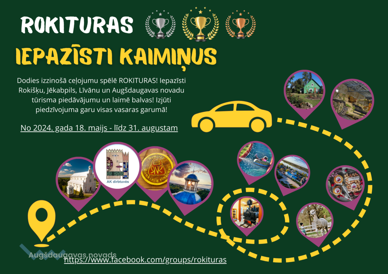 Rokišķu tūrisma informācijas centrs, sadarbībā ar Augšdaugavas, Līvānu un Jēkabpils novadu tūrisma informācijas centriem aicina sākt 2024. gada vasaras sezonu ar Latvijas – Lietuvas piedzīvojumu spēli „Rokituras — iepazīsti kaimiņus“ un laimēt balvas!