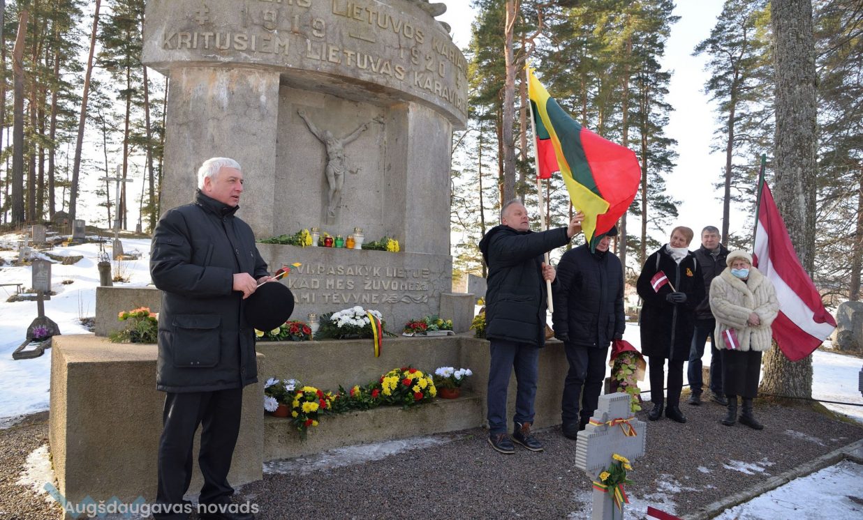 “Tā ir mūsu vēsture. Mēs atdodam godu tiem karavīriem, kas krita par Lietuvas neatkarību. Padomju laikos kapavieta tika aizmirsta. Tikai pēc neatkarības atjaunošanas katru gadu atsākām braukt šeit ik gadu, lai atdot godu kritušiem, arī remontējam kapavietas. Pateicos Latvijas pusei par sadarbību. Jebkādi jautājumi, kas attiecas uz kapavietu apsaimniekošanu vai remontu tiek kopīgiem spēkiem risināti,” teic Vitauts Saulis (Roķišķu rajona pašvaldības vadītāja padomnieks).