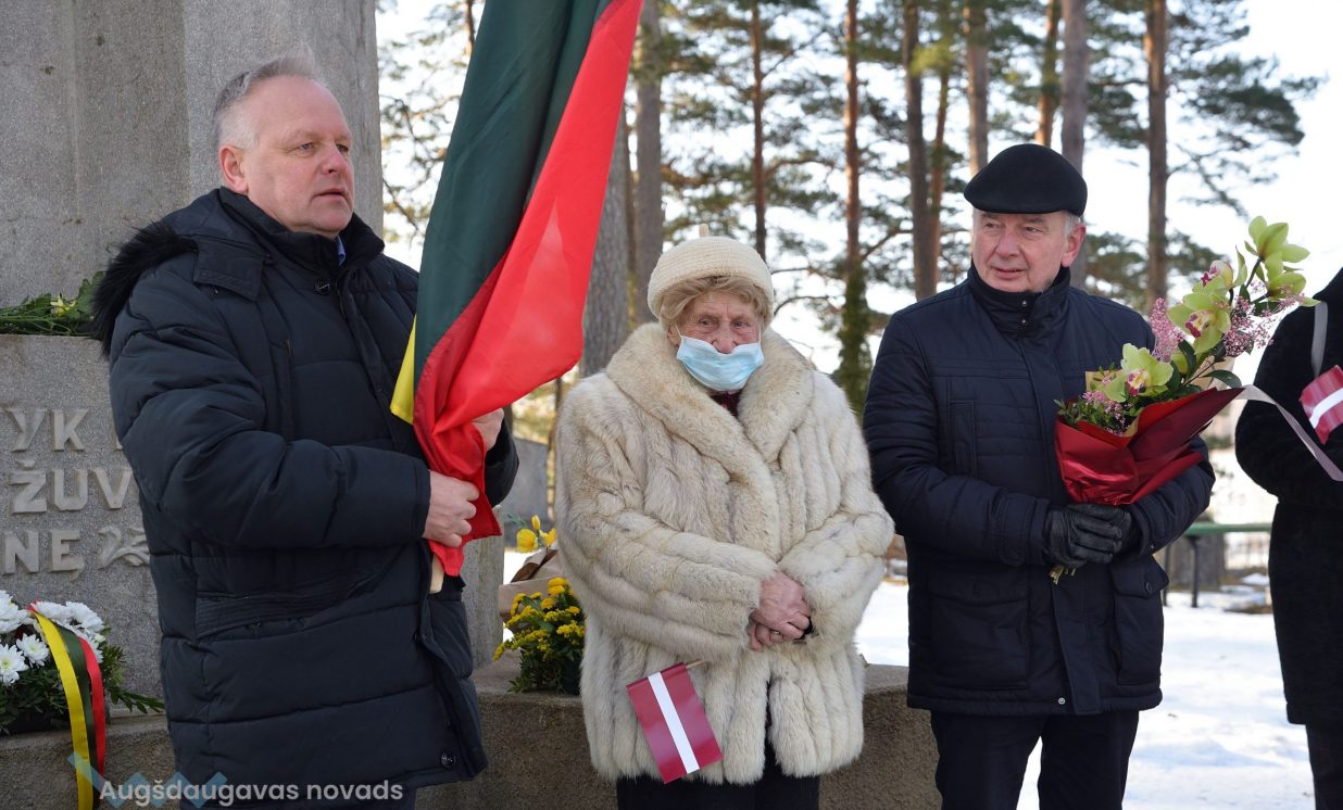 “Jāpateicas tiem, kas gājuši bojā, par mūsu kopīgu brīvu nākotni. Arī pašlaik mūsu karavīri stāv sardzē gan Lietuvā, gan Latvijā, par to, lai mēs varētu būt brīvi,” klātesošos sveica Augšdaugavas novada domes priekšsēdētājs A. Kucins.
