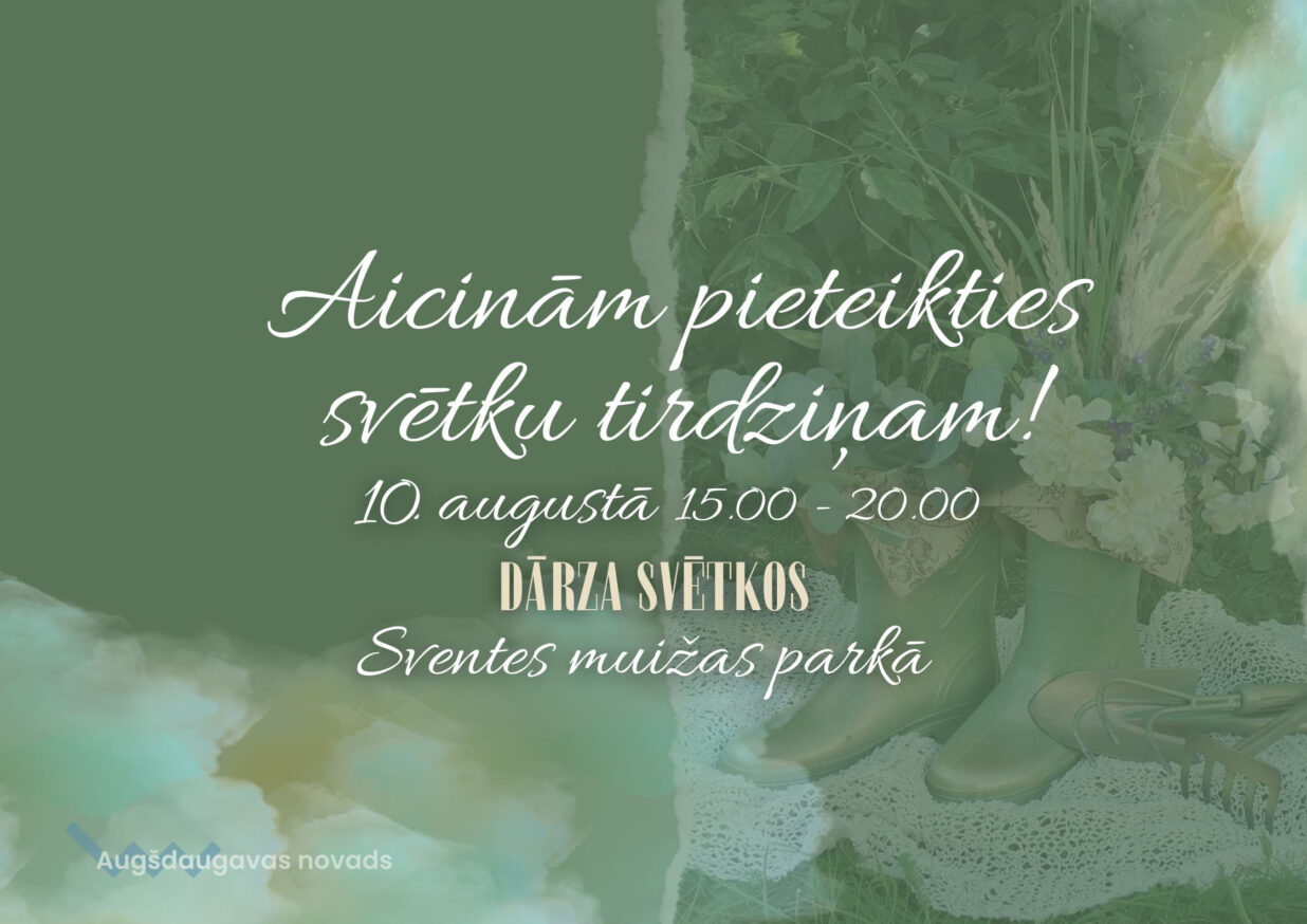 10. augustā no plkst.15.00 līdz plkst.20.00 Augšdaugavas novadā, Sventes pagastā notiks Dārza svētki Sventes muižas parkā. Dienas garumā būs arī mājražotāju un amatnieku tirdziņš, kurā tiek aicināti piedalīties ēdināšanas nozares pārstāvji, amatnieki, stādu tirgotāji un citi skaistu lietu radītāji.