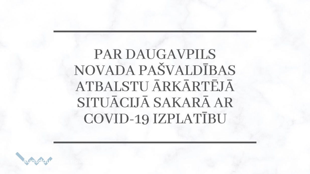 15. aprīlī Daugavpils novada domes ārkārtas sēdē apstiprināti saistošie noteikumi “Par Daugavpils novada pašvaldības atbalstu ārkārtējā situācijā sakarā ar Covid-19 izplatību”, kas nosaka Daugavpils novada pašvaldības pabalstu un atbalstu veidus ārkārtējās situācijas laikā, to saņemšanas kārtību, apmēru un personu loku, kurām ir tiesības saņemt atbalstu.