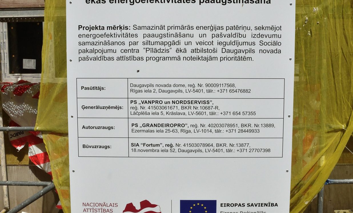 Ēkas energoefektivitātes paaugstināšanas būvdarbi notiek 4.2.2. specifiskā atbalsta mērķa “Atbilstoši pašvaldības integrētajām attīstības programmām sekmēt energoefektivitātēs paaugstināšanu un atjaunojamo energoresursu izmantošanu pašvaldībās ēkās” projekta Nr.4.2.2.0/17/I/097 “Sociālo pakalpojumu centra ”Pīlādzis” ēkas energoefektivitātes paaugstināšana” ietvaros. Projekta mērķis ir samazināt primārās enerģijas patēriņu, sekmējot energoefektivitātes paaugstināšanu un pašvaldību izdevumu samazināšanos par siltumapgādi, veicot ieguldījumus Sociālo pakalpojumu centra “Pīlādzis” ēkā atbilstoši Daugavpils novada pašvaldības attīstības programmā noteiktajām prioritātēm. Kopējās projekta izmaksas sastāda 1 640 814.22 eiro. Projekta attiecināmās izmaksas sastāda 824 652,66 eiro, no kurām ERAF finansējums – 466 171,00 eiro jeb 56,53%, Valsts budžeta dotācija sastāda 107542,95 eiro jeb 13,04%, pašvaldības līdzfinansējums sastāda 250 938,71 eiro, jeb 30,43%. Daugavpils novada pašvaldība, izmantojot Valsts kases aizņēmumu, finansēs projektā paredzētās izmaksas ar projekta realizēšanu saistītajiem izdevumiem 816 161.56 eiro apmērā.