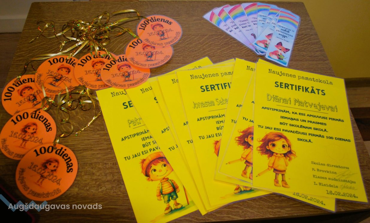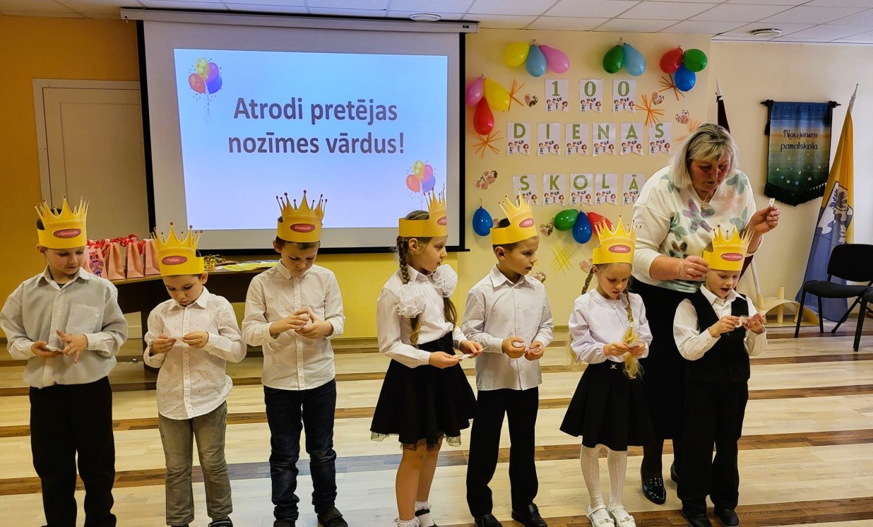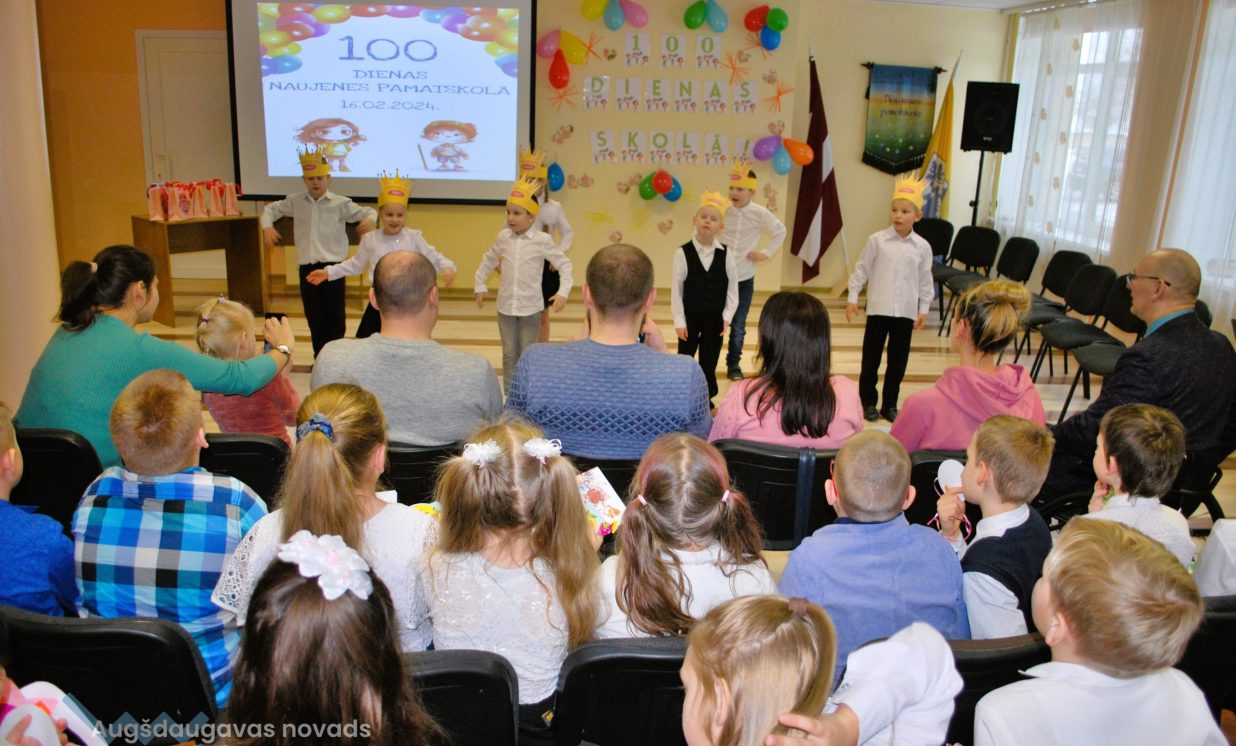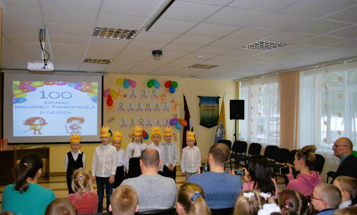Jau par tradīciju Naujenes pamatskolā kļuvis pasākums pirmklasniekiem, kad skolas solā apgūtas pirmās iemaņas lasīšanā, rakstīšanā un rēķināšanā. 100 dienas - posms, kad mazie skolēni pierod pie skolas kārtības, ikdienas ritma, skolas vides, jauniem draugiem, kad mācās sadarboties, draudzēties. Vecākiem tas arī ir īpašs laiks, jo viņu bērni nu ir kļuvuši par skolēniem.