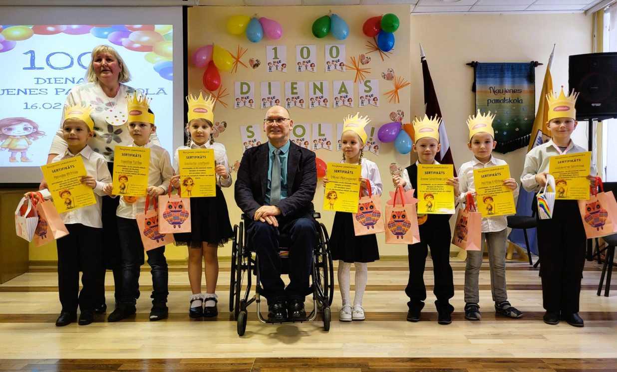 Š.g. 16 februāris mūsu 1. klases skolēniem, viņu vecākiem un klases audzinātājai Ingrīdai BLEIDELEI bija svētku diena – skolā aizvadītas pirmās 100 dienas!
