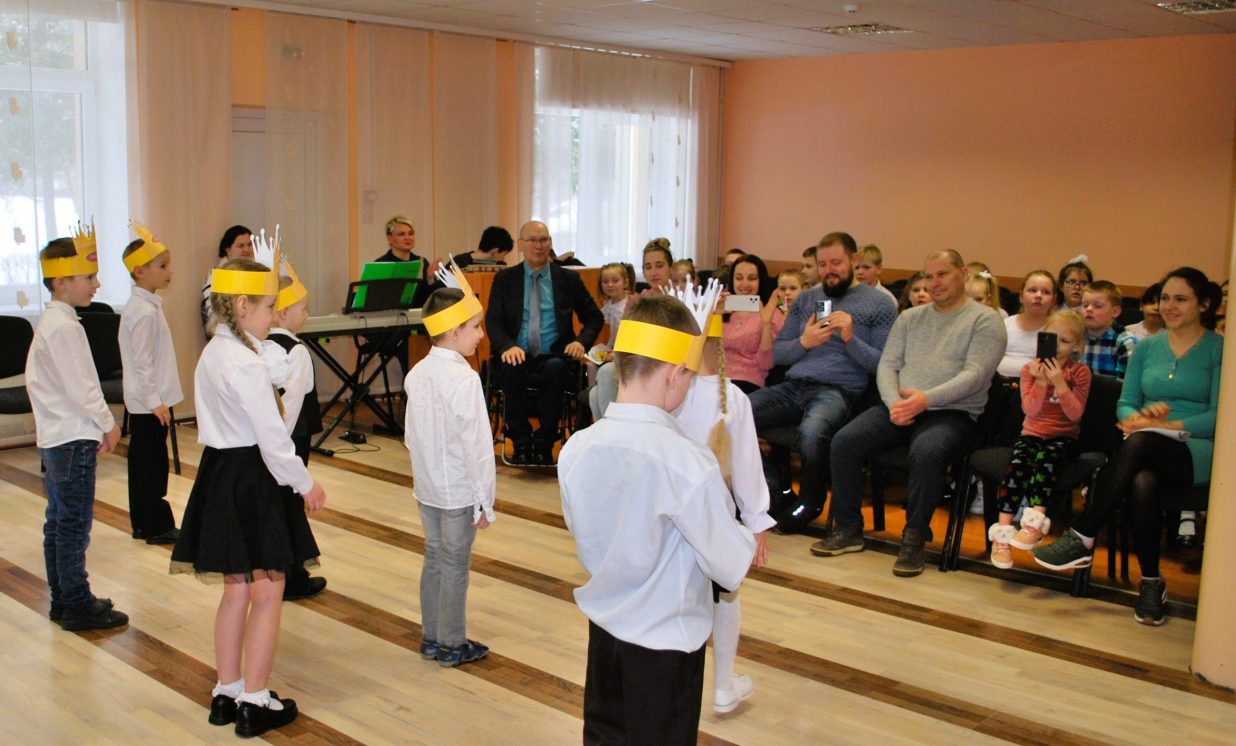 Sirsnīgus, mīļus sveicienus bija sagatavojuši sākumskolas 2. un 3. klases skolēni un 2. – 3. kl. skolēnu vokālais ansamblis “Ķipariņi” (skol. Inna KRALIKA).