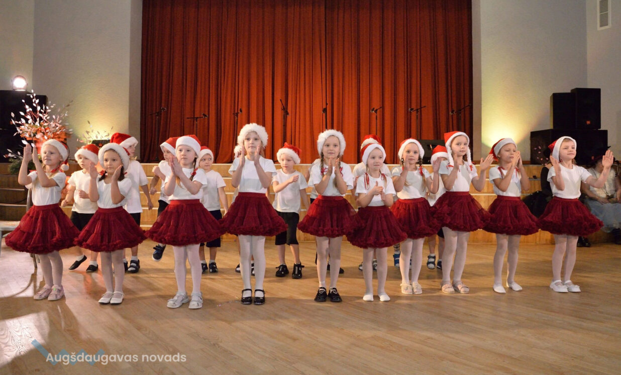 Dalībnieku skaists šogad bija īpaši liels. Tāpēc pasākums tika rīkots 2 daļās. Pirmajā daļā Ilūkstes Bērnu un jauniešu centra popgrupas “Varavīksne” dalībnieki ar dziesmu “Ziemassvētki mūsmājā” iesāka koncertu (skolotāja Ona Lapa), to turpinaja Zemgales vidusskolas audzēkņi ar muzikālu sveicienu “Jau Ziemassvētki klāt” (skolotāja Ludmila Lukjanova), savukārt Kalupes pamatskolas audzēkņi ar deju “Peles brauca dzirnavās” izstāstīja stāstu par miltu malšanu (skolotājas Māra Leleva un Aija Raščevska), Lāču pamatskolas pirmsskolas grupas “Lāčuks” audzēkņi izdejoja deju “Sniega bumbas” (skolotāja Anastasija Lukašenoka), Ilūkstes Raiņa vidusskolas pirmsskolas grupas “Ķipari” audzēkņi dziesmā “Pie eglītes” izstāstīja par darāmajiem darbiem (skolotāja Natālija Kolosova), Salienas vidusskolas audzēkņi izdejota skaistu stāstu “Mēness un zvaigznīšu dejā” (skolotāja Elena Olenina un Oksana Klimanska), Nīcgales pirmsskolas izglītības iestādes “Sprīdītis” audzēkņi bija sagatavojuši skanīgu un daudzveidīgu mūzikas instrumentu orķestri (skolotāja Anastasija Lukašenoka), savukārt Ilūkstes pirmsskolas izglītības iestādes “Zvaniņš” audzēkņi priecēja ar uzvedumu – dziesmu, dzejoli un deju (skolotāja Ona Lapa). Pasākuma otrajā daļā Laucesas pamatskolas programmas īstenošanas vietas “Silene” audzēkņi ieradās ar Ziemassvētku kamanām un nodziedāja dziesmu “Kas ir Ziemassvētki” (skolotājas Inna Kralika un Diāna Krasiļnikova), Biķernieku pamatskolas audzēkņi uzvedumā izdziedāja dziesmu par piparkūku cepšanu (skolotājas Līvija Bogdāne un Olga Pankova), Laucesas pamatskolas audzēkņi parādīja, kā cept piparkūkas un pacienāja ar tām viesus (skolotāja Maruta Kuzmina), savukārt Randenes pamatskolas audzēkņi nodziedāja dziesmu “Lido, sniedziņ!” (skolotāja Larisa Sauleviča), Naujenes pirmsskolas izglītības iestādes “Rūķītis” audzēkņi iepriecināja ar dziesmu eglītei “Ziemassvētku princese” (skolotāja Tatjana Zviceviča), Špoģu vidusskolas pirmsskolas grupa “Zvaniņš” izdejoja un izdziedāja rotaļu “Adiet, bērni, ko adiet!” (skolotājas Aija Ozoliņa un Anita Smane), Bebrenes vispārizglītojošās un profesionālās vidusskolas audzēkņi ieradās Ziemassvētku vilcieniņā un nodziedāja pelīšu stāstu dziesmā “Pelītes cep” (skolotāja Regīna Medisa), bet Vaboles pamatskolas audzēkņi aicināja visus brokastīs dejā “Nākat bērni brokastīs” (skolotāja Anita Skrinda”.
