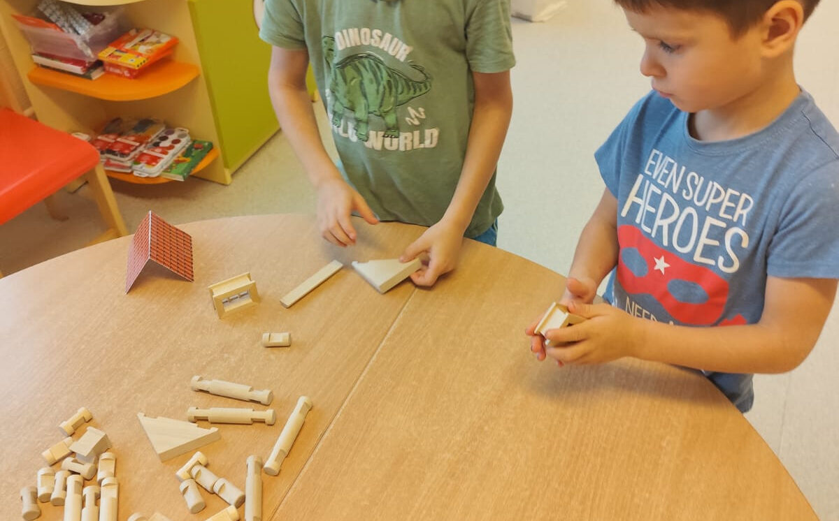 Pasākuma praktiskajā daļā bērni pārvērtās par īstiem jaunajiem būvniekiem. Strādājot individuāli vai nelielās komandās, viņi veidoja savas mājiņas no koka un plastmasas stienīšiem. Šis radošais process rosināja sadarbību, pašizpausmi un problēmu risināšanu – bērni domāja par konstrukcijas stabilitāti, izvēlējās piemērotākos materiālus un centās izveidot pēc iespējas interesantāku un stiprāku ēku.