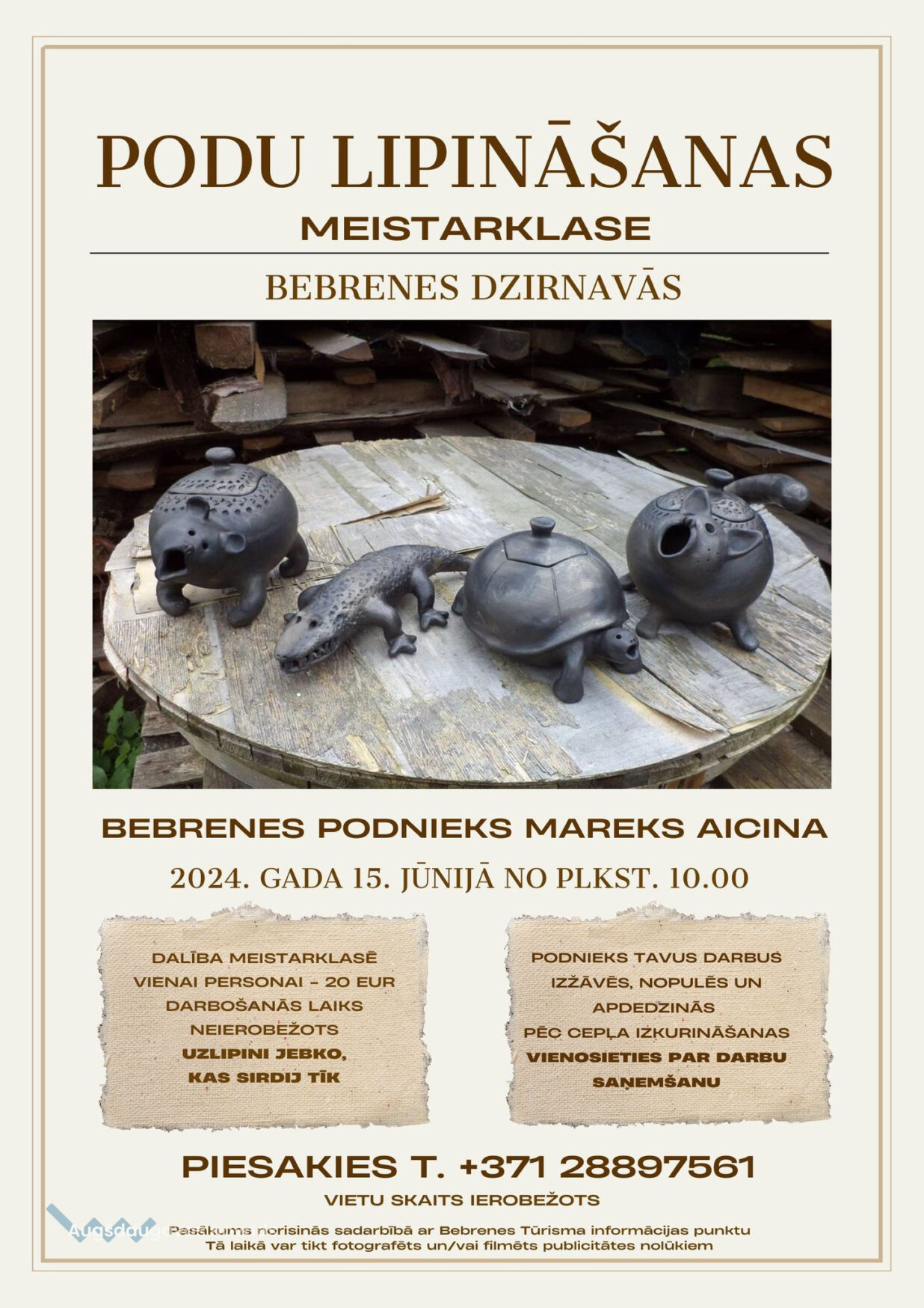 15. jūnijā no 10.00 Bebrenes dzirnavās notiks podu lipināšanas meistarklase podnieka Mareka Zavodnoja vadībā.