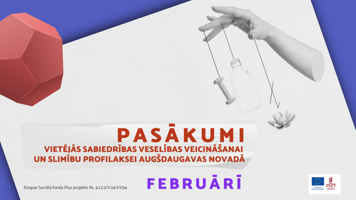 NovadsAktualitātesJaunumiProjekta “Pasākumi vietājās sabiedrības veselības veicināšanai un slimību profilaksei Augšdaugavas novadā” aktivitāšu plāns februārim
