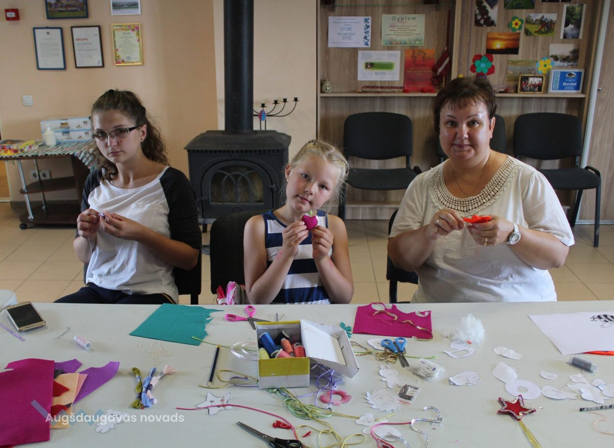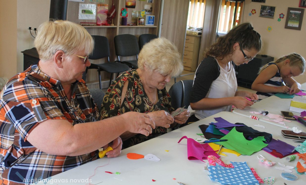 10. augustā Maļinovas pagasta SN norisinājās radošā darbnīca “Veiklās rociņas“ Annas Lukjanskas vadībā. Radošajā darbnīcā šoreiz piedalījās daudz kuplāks skaits interesentu. Paši dalībnieki meklēja savus šablonus, lai izveidotu jaunas filca rotaļlietas. Sākumā Anna iepazīstināja ar darba gaitu, un darbs varēja sākties. Katrs dalībnieks izvēlējās papīra šablonu, kuru ar pildspalvu apzīmēja uz filca, izgrieza un piešuva dekorus, pērlītes, lentītes u.c. Detaļas sašuva kopā un pildīja ar sinteponu. Nodarbībā galvenais ir pacietība, izdoma un laba redze. Nodarbību laikā daži paspēja izgatavot divas rotaļlietas, kuras var izmantot arī kā eglīšu rotājumus un adatu spilventiņus.