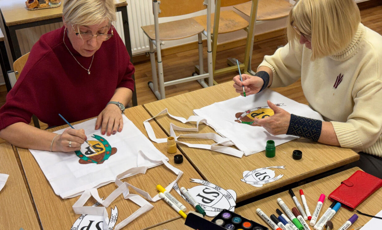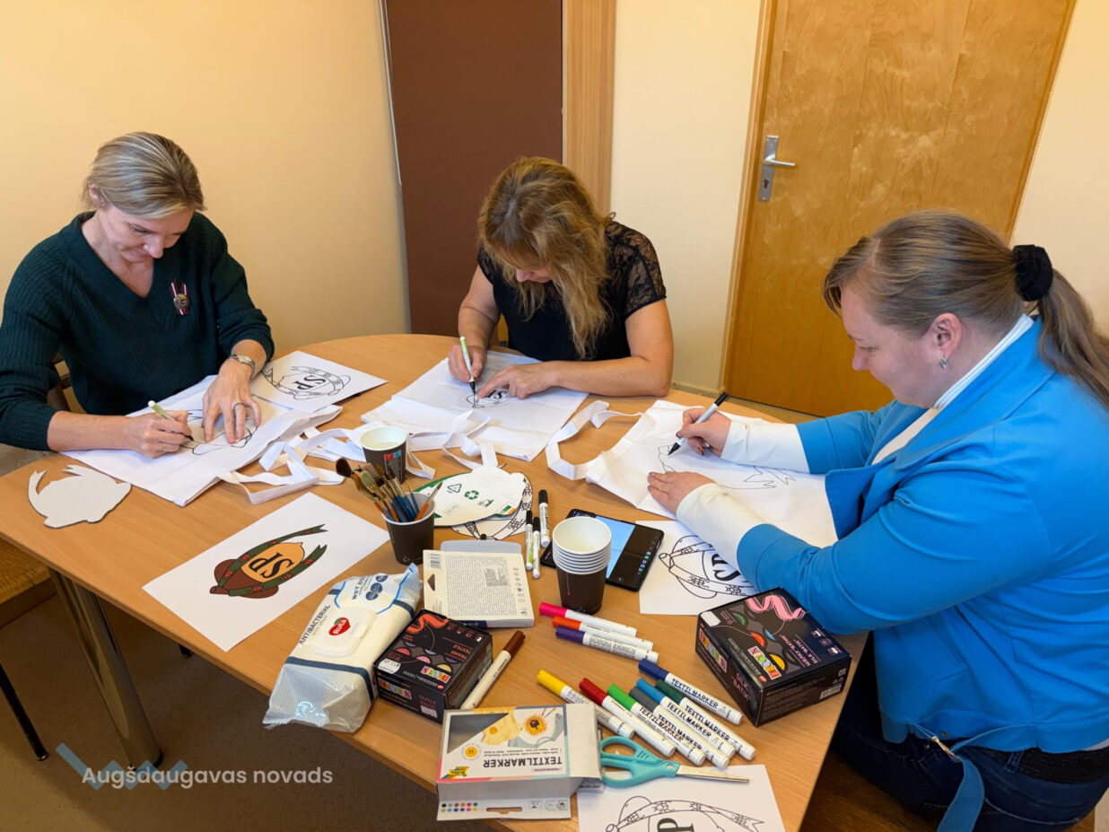 Nodarbības laikā skolotāji kopā ar skolēnu pašpārvaldes pārstāvjiem apgleznoja auduma maisiņus, izmantojot skolēnu pašpārvaldes logotipu, kas ieguva uzvaru konkursā “Skolēnu pašpārvaldes logotipa izstrāde”. Šī aktivitāte deva iespēju skolotājiem radoši izpausties un vienlaikus vizuāli popularizēt skolēnu pašpārvaldes identitāti.