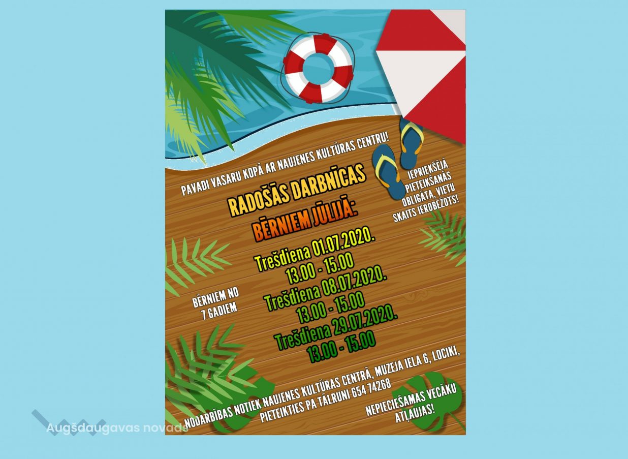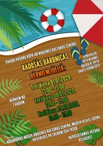 Turpinām darboties arī jūlijā! Aicinām vecākus pieteikt savus bērnus (pilni 7 gadi un vairāk) uz radošajām darbnīcām jūlijā. Darbnīcas notiks: