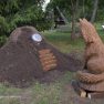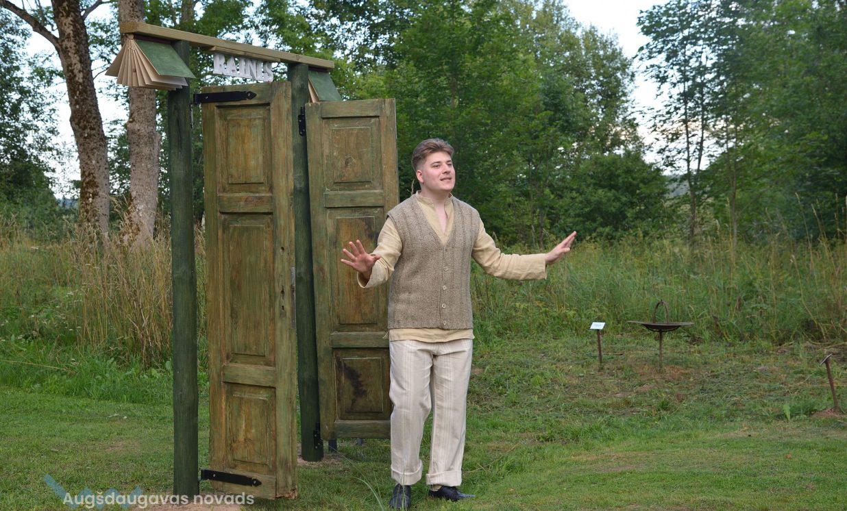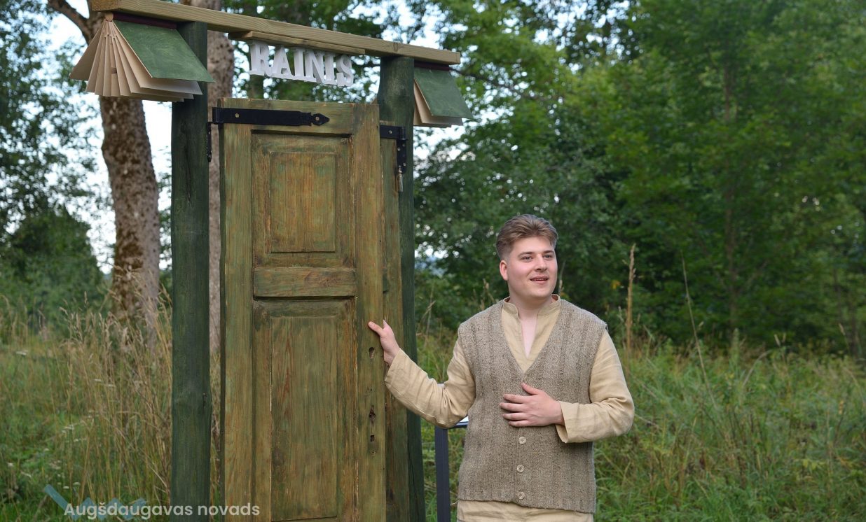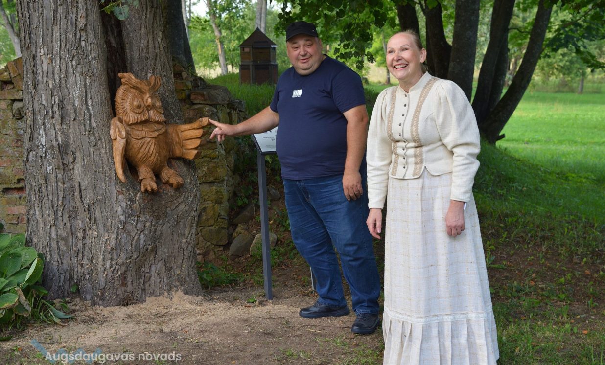 Visvairāk darbu plenērā ir radījis Špoģu Mūzikas un mākslas skolas pasniedzējs Valdis Grebežs, kurš plenērā iesaistījis arī savu audzēkni Darju Adahovsku. Valdis atzīst, ka Rainis ir Latvijas zīmols, arī pašam patīk Raiņa dzeja. Šis gan viņam bijis pirmais plenērs, līdz ar to arī liels izaicinājums, jo jāpierāda pašam sev un citiem, uz ko esi spējīgs. Valdis izveidojis sajūtu taku, ko basām kājām var izstaigāt lieli un mazi. Pašam vismīļākais objekts ir vārti ar senām durvīm, kas nāk no pašas Raiņa mājas un ieguvušas jaunu vizuālo tēlu meistara rokās. Pielietojot jaunu tehniku, Valdis radījis gliemeža skulptūru, no kuras skan mūzika. Liels izaicinājums bijis izveidot kurmja alu ar lūku. Bija jāizdomā sīkas nianses, lai objekts dzīvotu visos gadalaikos. Paša kurmja izveidē viņš iesaistīja savu audzēkni Darju un neslēpj sajūsmu, ka beidzot pēc ilgiem gadiem izjūt milzu gandarījumu, redzot savam darbam turpinātāju. “Nekad nedomāju, ka mans pēctecis varētu būt meitene. Viņa ideāli veido, strādā ar gāzbetonu. Apbrīnoju, kā viņa to kurmi dabūja gatavu. Viņai jau tagad ir tēlnieka domāšana, un es paredzu viņai lielu nākotni. Ceru, ka šis starts viņu iedvesmos,” saka Valdis Grebežs. Darja Adahovska nupat pabeigusi Špoģu mākslas skolu un domā, ka ar mākslu noteikti būs saistība tālākajā dzīvē, bet pagaidām meitene nezina, vai tā būs profesionāla nodarbošanās vai vaļasprieks, jo pašai ļoti patīk arī matemātika. Darja atzīst, ka guvusi milzīgu pieredzi, strādājot kopā ar spēcīgiem māksliniekiem, turklāt viņai bijusi iespēja izbaudīt plenēra radošo atmosfēru: “Man tās būs šīs vasaras spilgtākās atmiņas.”