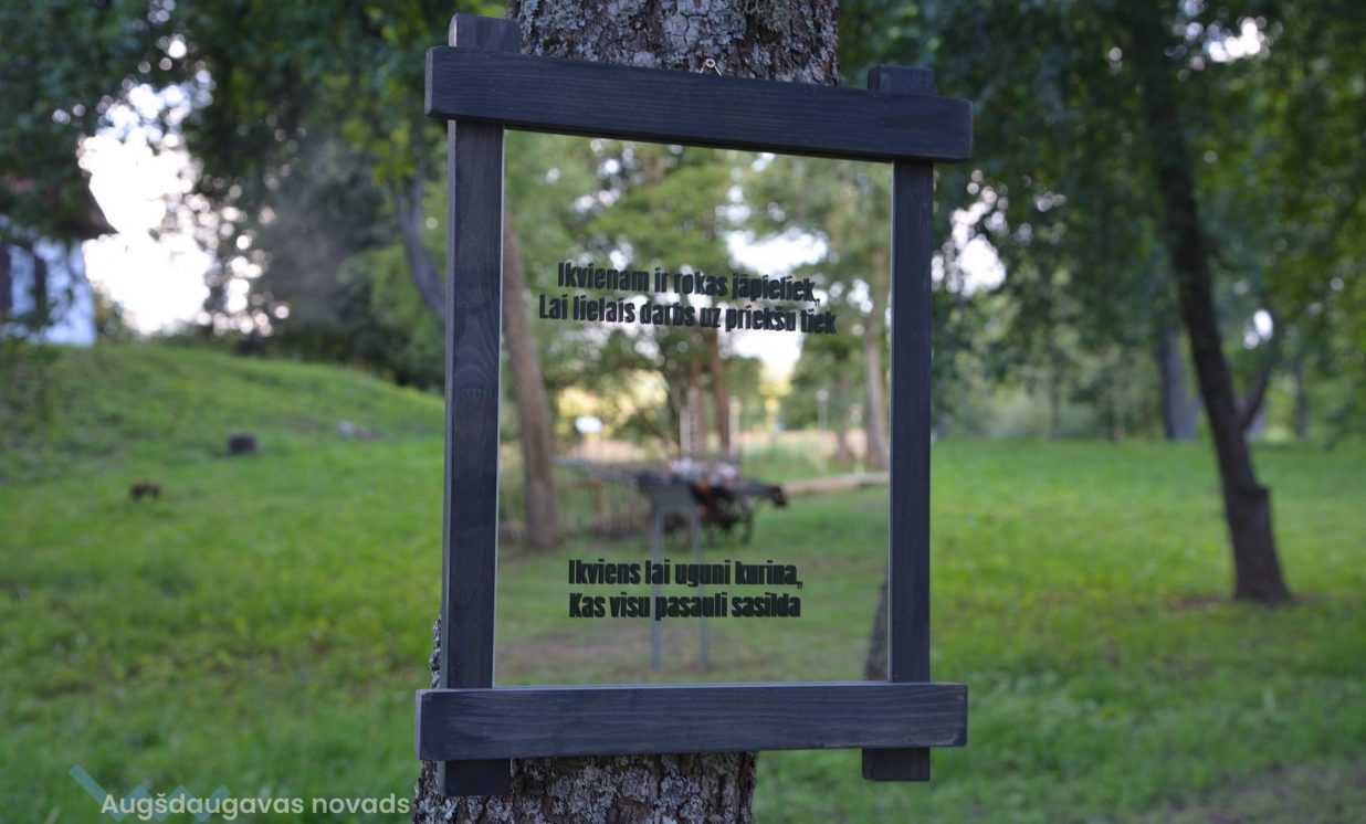 Plenērs īstenots pārrobežu sadarbības projekta ietvaros sadarbībā ar Daugavpils Universitātes Mūžizglītības, kultūras un zinātnes komunikācijas biedrību “Intelekta parks”, kuras dalībniece Solvita Rubiķe ir koncepcijas autore. Solvita nupat absolvējusi Daugavpils Universitāti, kur studēja mākslas menedžmentu. Labprāt piekritusi biedrības “Intelekta parks” aicinājumam iesaistīties projektā. Jauniete atzīst, ka tas viņai bijis gluži kā vēl viens diplomdarbs, plenēra laikā gūta milzu pieredze, esot prieks par iespēju īstenot lielas un skaistas idejas. Savas ieceres jauniete izrunājusi ar Raiņa mājas Berķenelē saimniecēm, līdz nonākušas pie kopsaucēja. “Visas vēlmes, kuras man nāca, lasot Raiņa dzeju, tika īstenotas. Visi bija ļoti apmierināti. Tagad ir interesanta sajūta, nedaudz sirreāla, jo sākumā zīmē skices, nes rādīt, runā par to, lasi dzeju, bet tagad tas viss atrodas tepat dārzā,” saka Solvita un atzīst, ka skolā ar literatūru bijusi uz “jūs”, bet dzīve visu saliek pa plauktiem. “Skolotājai teicu, ka man ar literatūru nebūs nekāda sakara. Bet tā nu gadījās, ka nācās iet cauri Raiņa dzejai. Tagad pavisam citādāk skaties uz to dzeju un tver dzeju.” Solvita ir autore vienam no vides objektiem – spoguļu alejai. Tajos spoguļojoties, var lasīt Raiņa dzejas citātus.