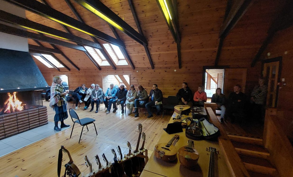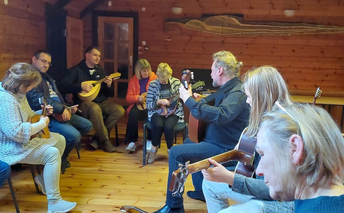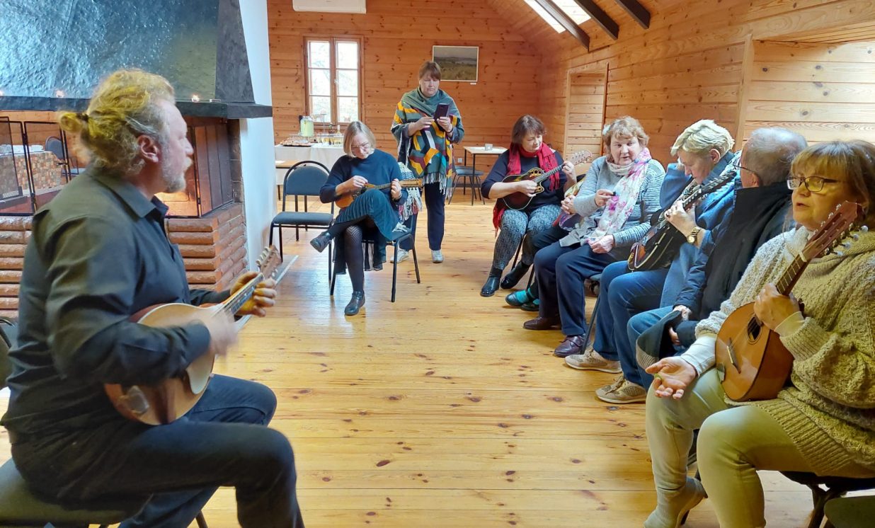 Turpinājumā pasākuma galvenais viesis – mandolīnu virtuozs Gintaras Andrijauskas ar lielu aizrautību aicināja ikvienu dalībnieku apgūt burvīgā mūzikas instrumenta spēles pamatus. G. Andrijauska vadībā mandolīnas spēle padevās ikvienam, mūziķa metodiskā pieeja uzrunāja visus, tāpēc jau aptuveni pēc pusstundas vingrināšanās jaunizveidotais mandolīnu ansamblis vienojās kopīgā dziesmas izpildījumā.