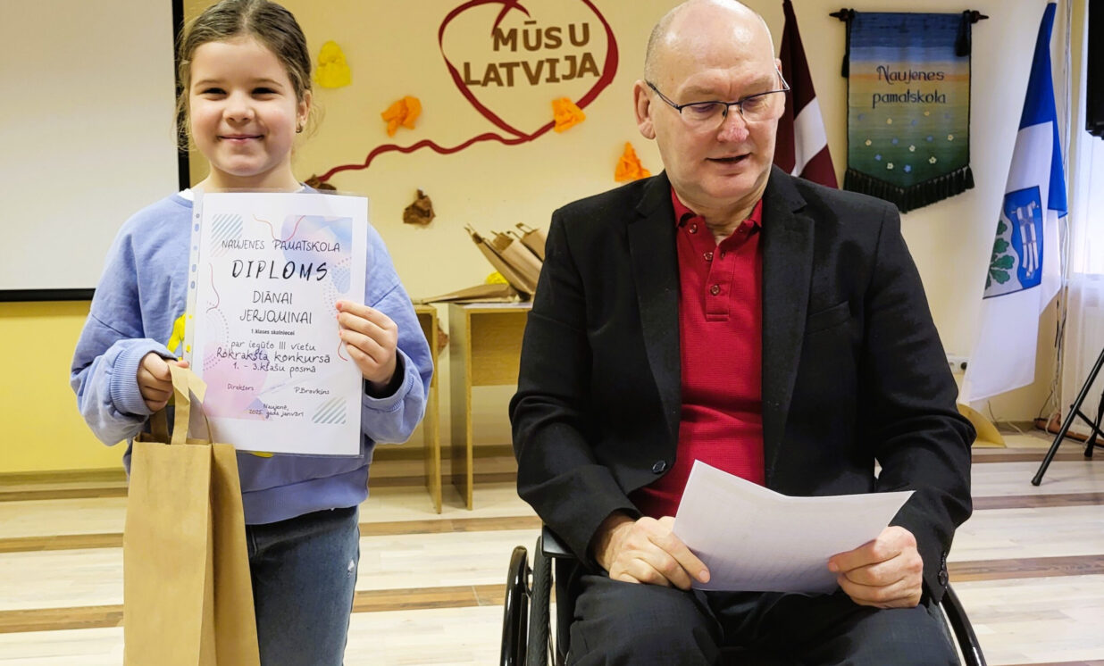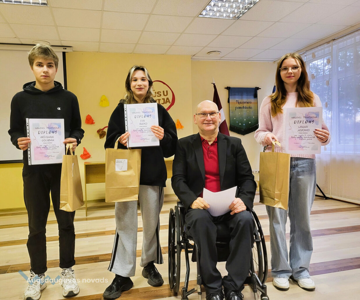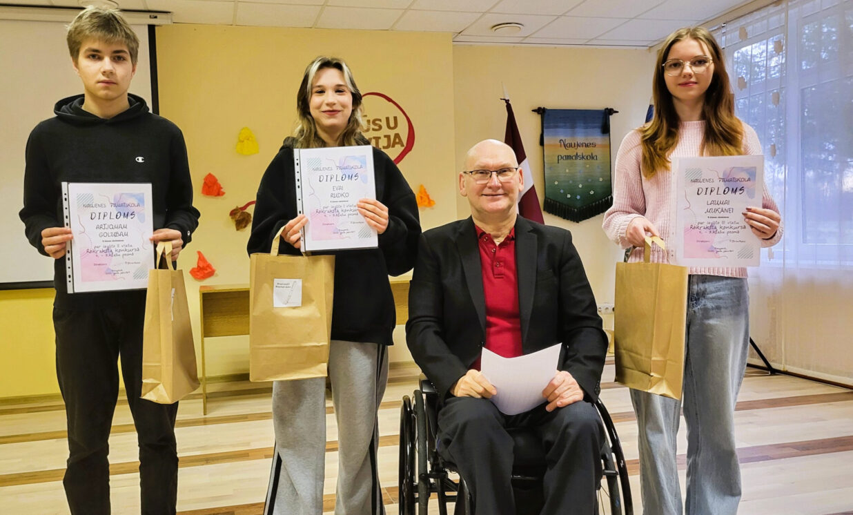 Sveicam glītāko rokrakstu īpašniekus un uzvarētājus: 1. vieta – Diāna MATVEJEVA (2.kl.), Eva RUDKO (9.kl.); 2. vieta – Elīza KUCINA (1.kl.), Artjoms GOLUBS (9.kl.); 3. vieta – Diāna JERJOMINA (1.kl.), Lauma MUKĀNE (9.kl.)