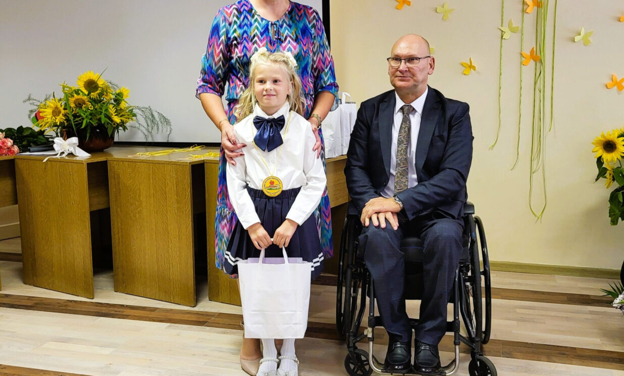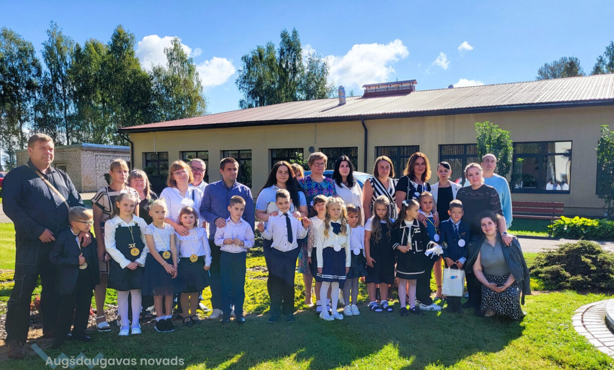 Īpaši tika sumināti pirmklasnieki un viņu klases audzinātāja Alita Kokina. Katrs mazais skolēns tika iepazīstināts ar skolas saimi, saņemot no direktora un audzinātājas pārsteiguma dāvanu un medaļu ar vārdiem “Esmu Naujenes pamatskolas pirmklasniece/pirmklasnieks” – kā skaistu pirmo soli jaunajā dzīves posmā.