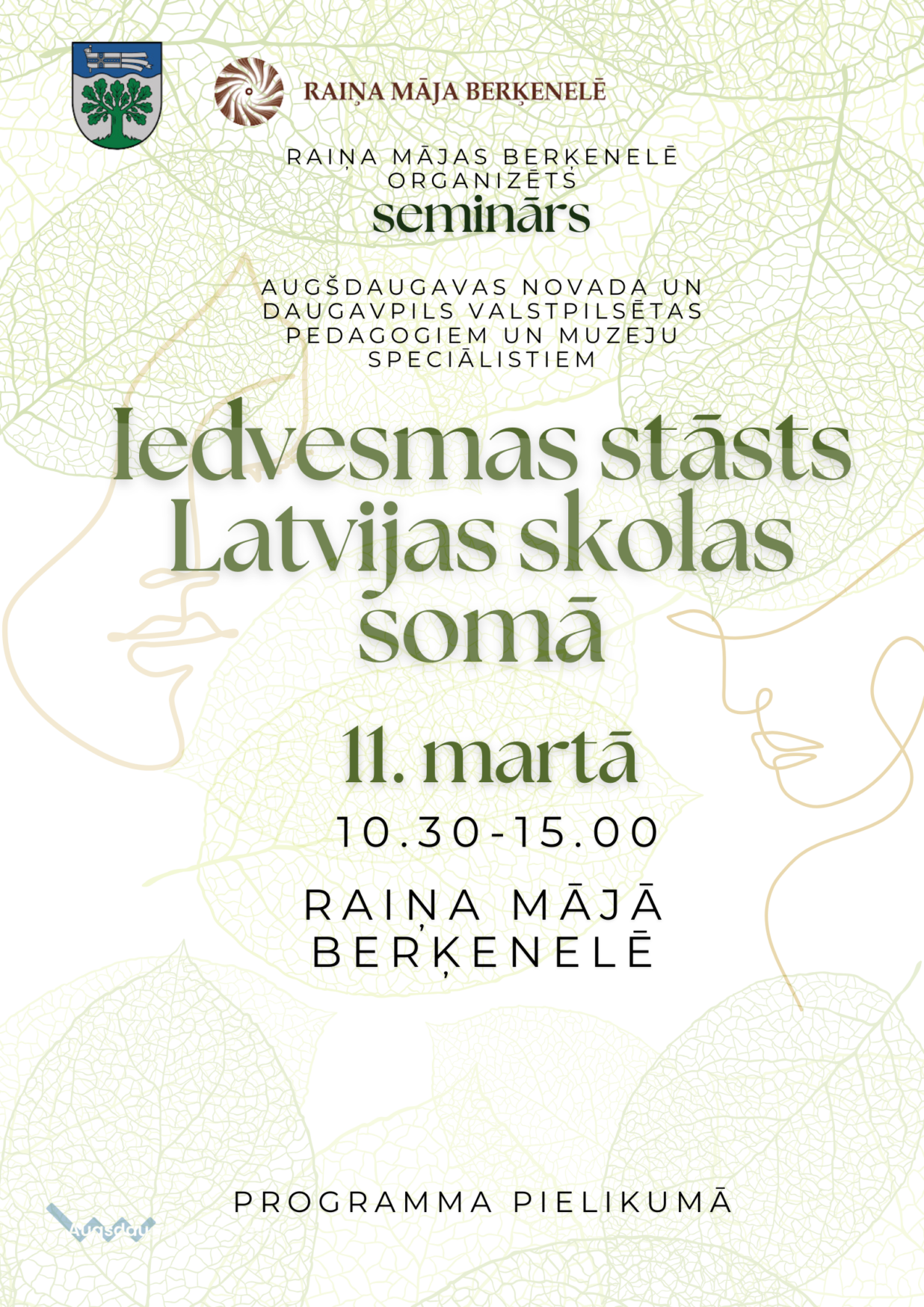 11. martā Raiņa māja Berķenelē organizē semināru Daugavpils pilsētas un Augšdaugavas novada pedagogiem un muzeju speciālistiem “Iedvesmas stāsts Latvijas skolas somā”.